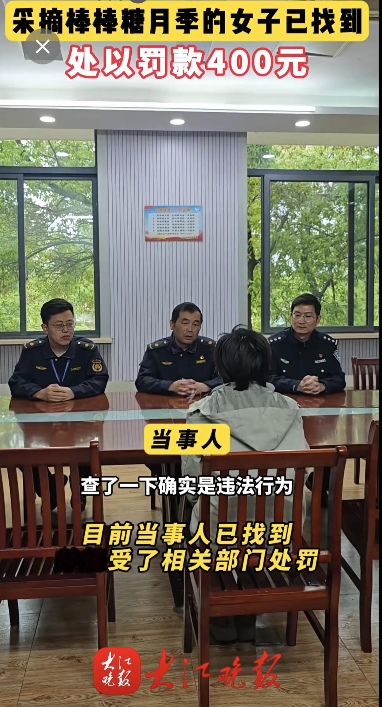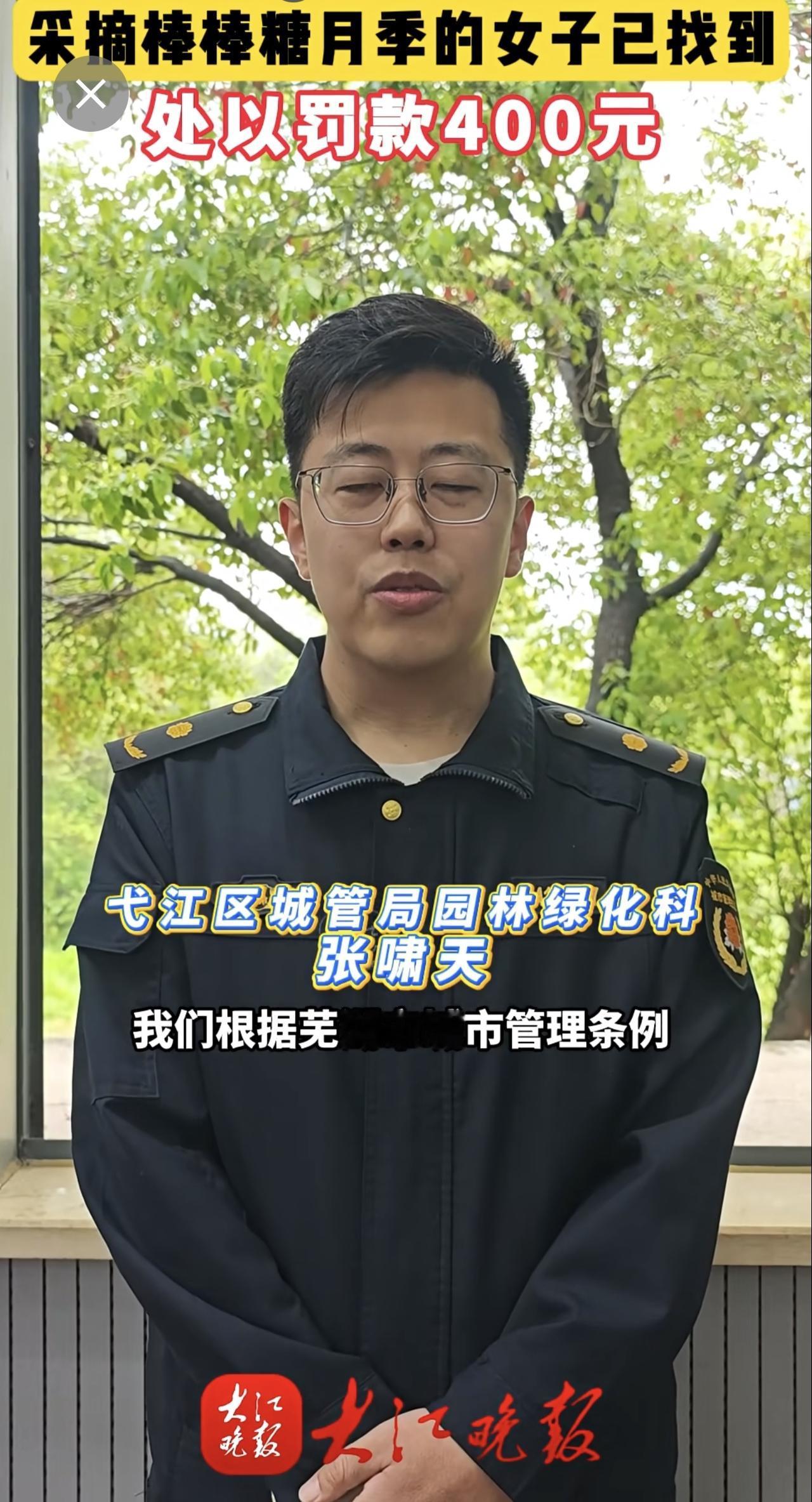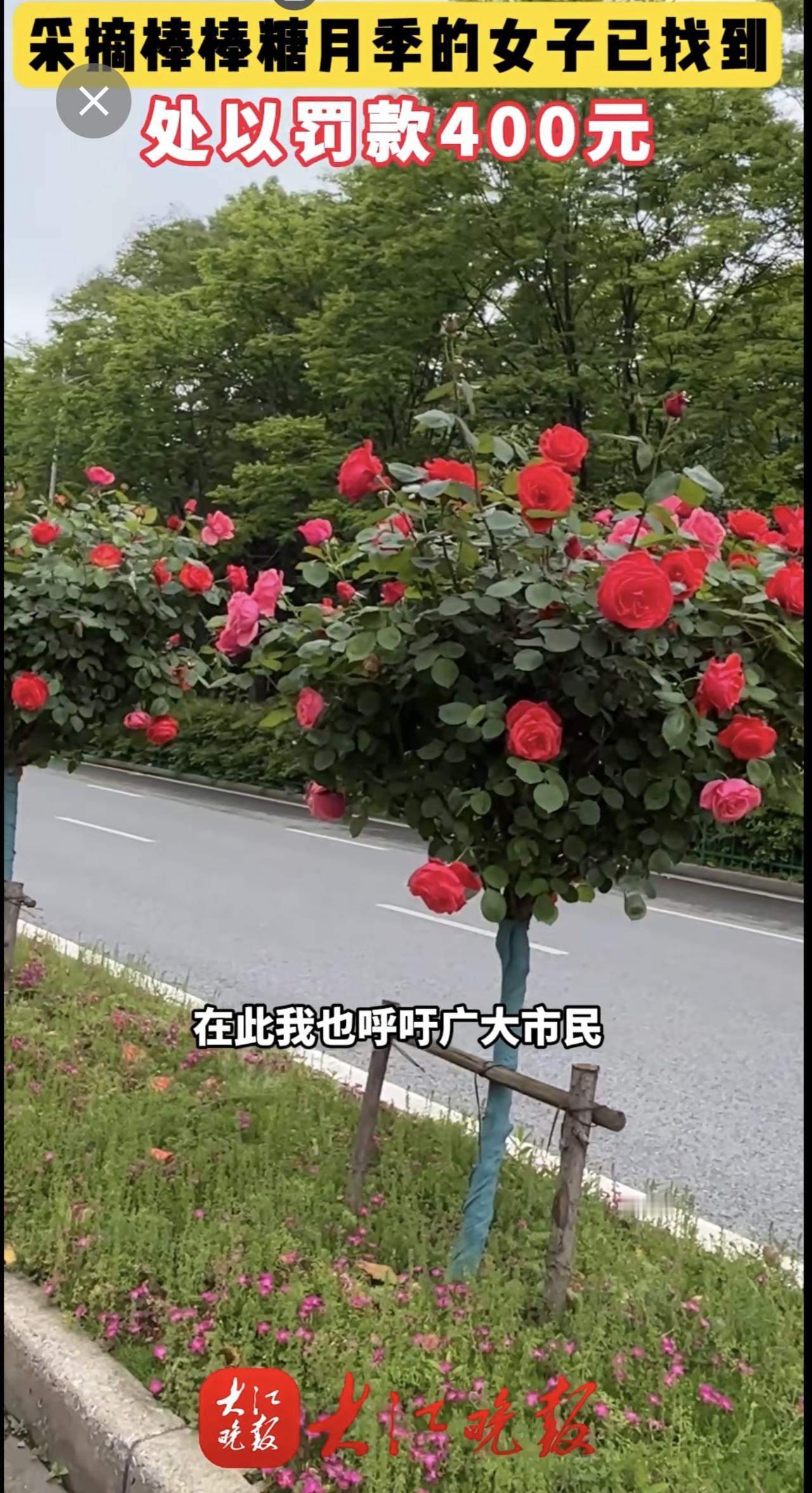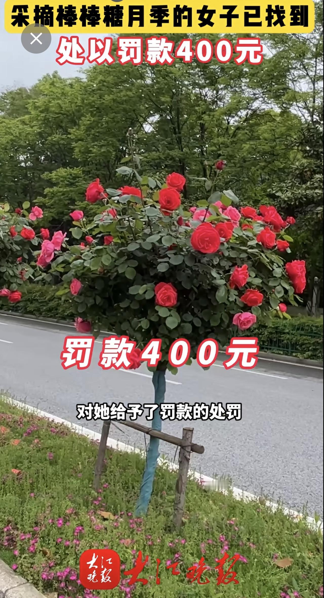 大江晚报报道有人在乌霞山路十二中南门段拿剪刀采摘绿化带的棒棒糖月季花。弋江区城市管理局与辖区警方迅速锁定当事人。当事人对自己破坏公共绿化的行为十分后悔,接受了罚款处罚和有关部门的批评教育。芜湖城管部门提醒:破坏公共绿化涉嫌违法,请把美景留在枝头。