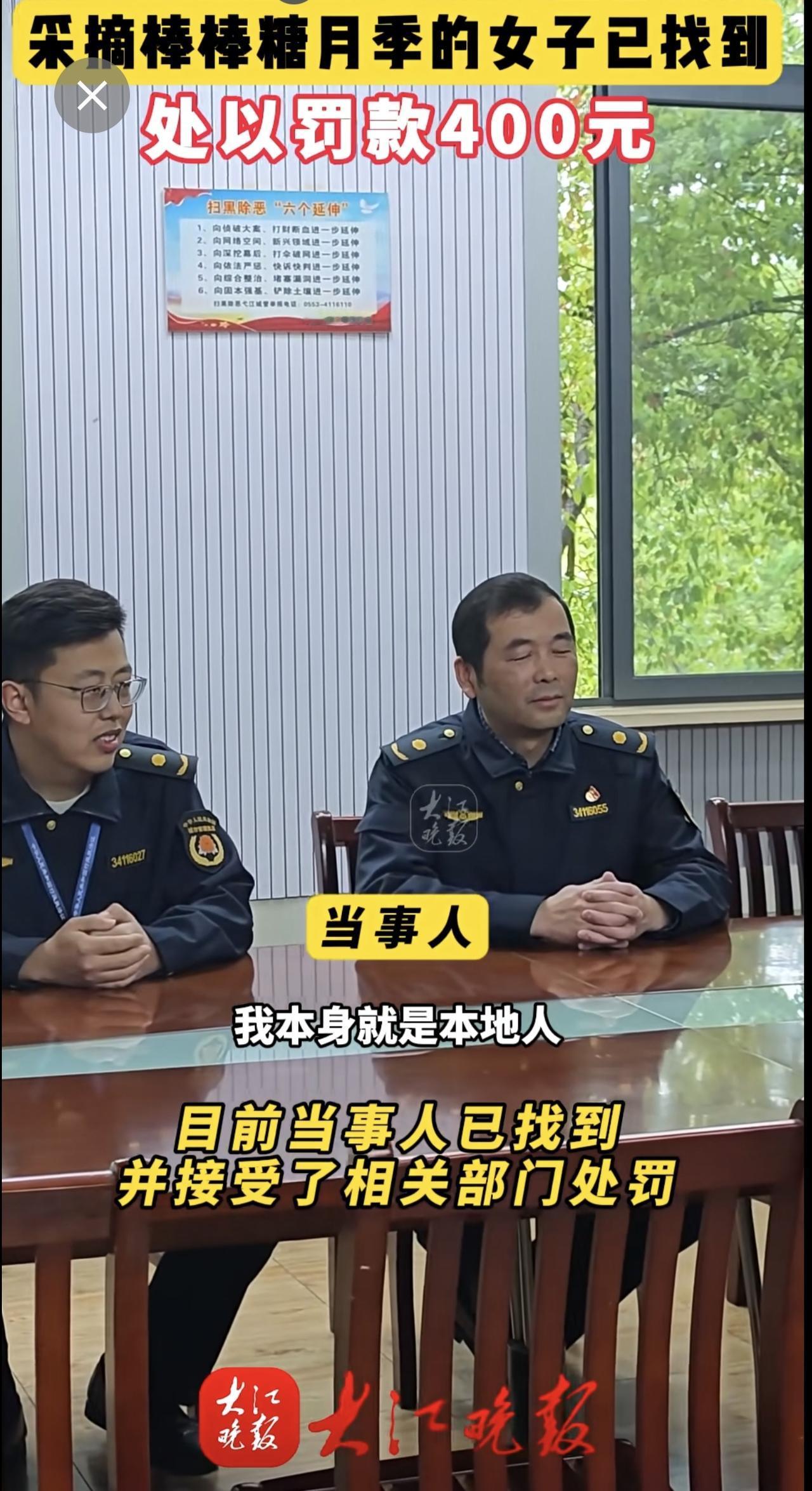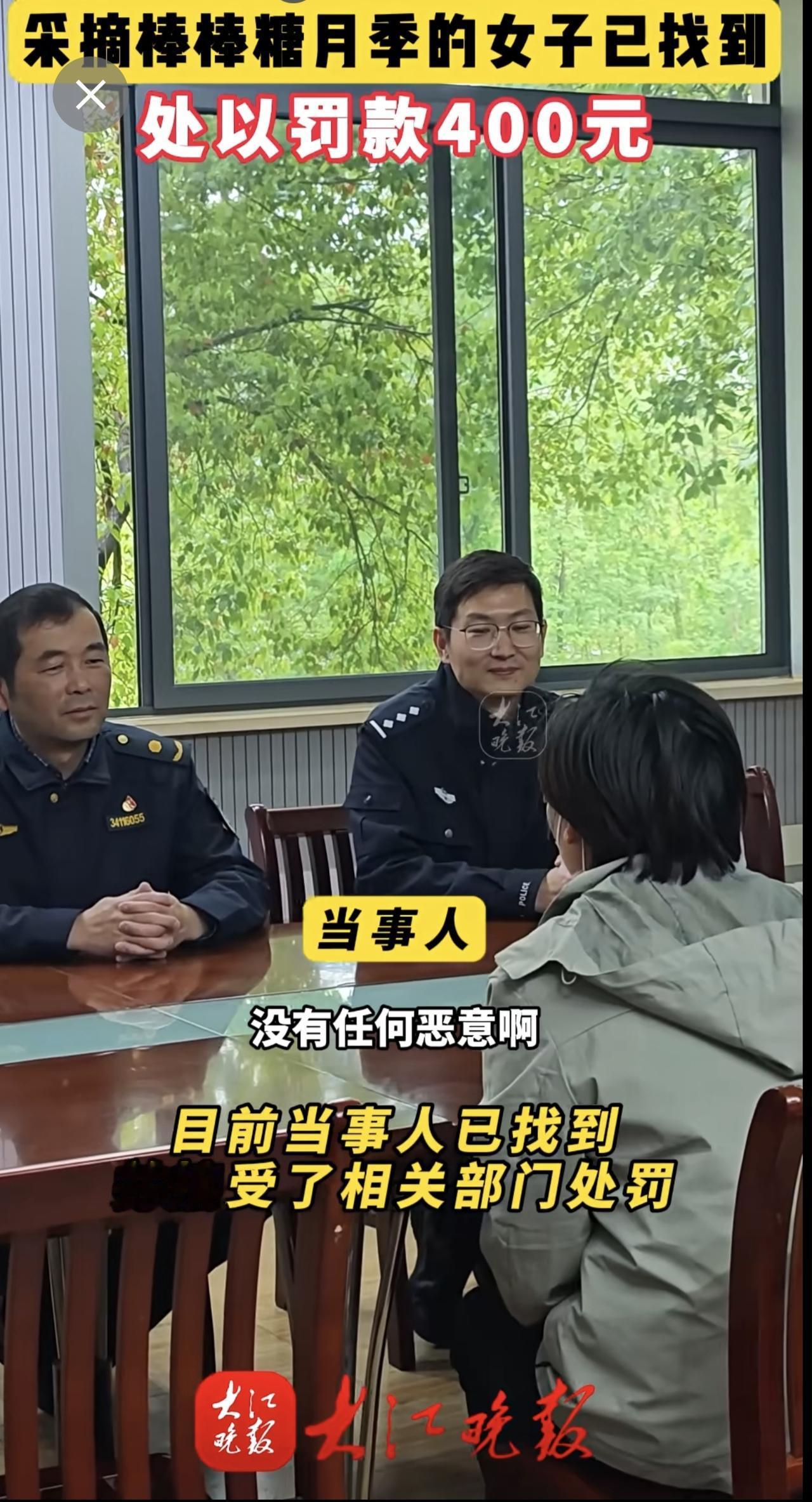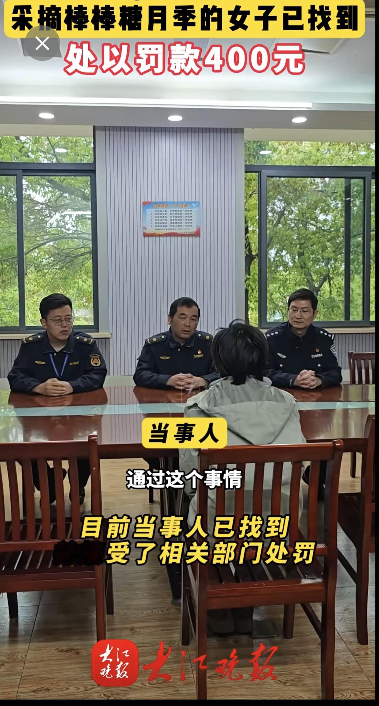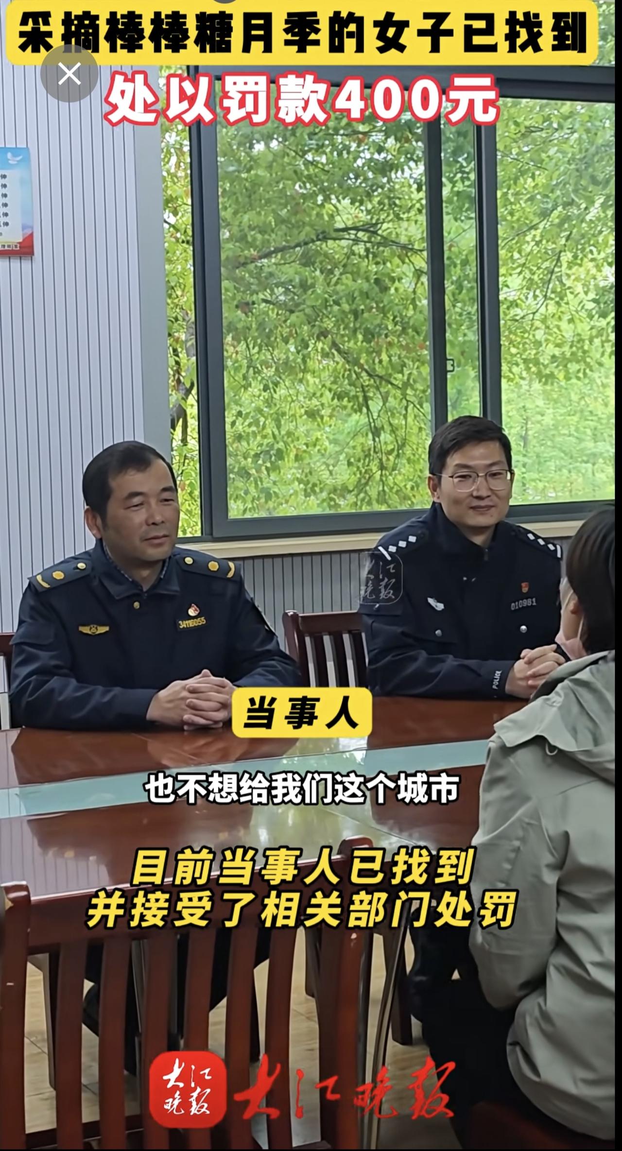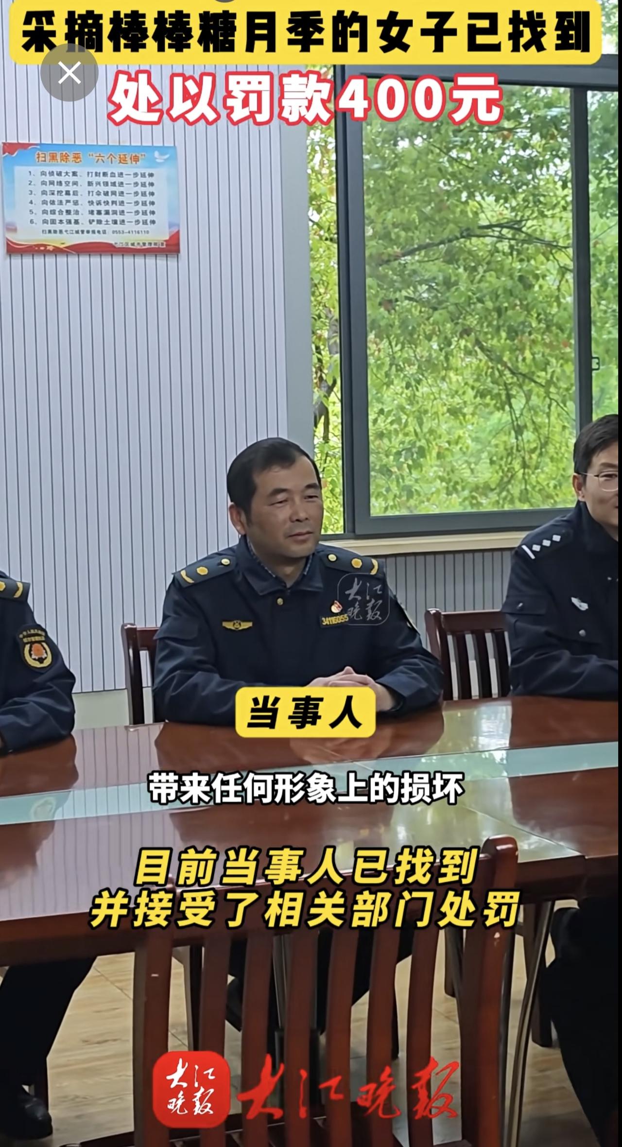 大江晚报报道有人在乌霞山路十二中南门段拿剪刀采摘绿化带的棒棒糖月季花。弋江区城市管理局与辖区警方迅速锁定当事人。当事人对自己破坏公共绿化的行为十分后悔,接受了罚款处罚和有关部门的批评教育。芜湖城管部门提醒:破坏公共绿化涉嫌违法,请把美景留在枝头。