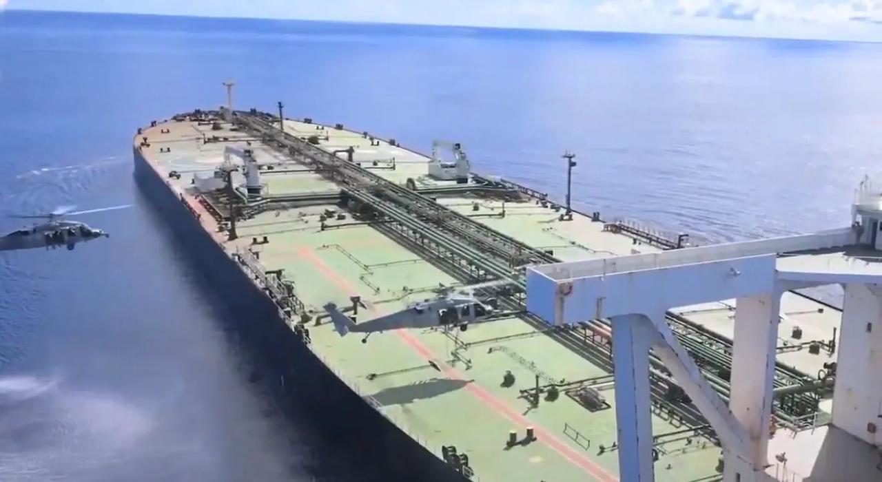 此事数小时前发生在远离霍尔木兹海峡数千公里的印度洋面。美军在发出警告后,乘直升机实施快速绳降登船,查扣了这艘正受制裁的油轮。