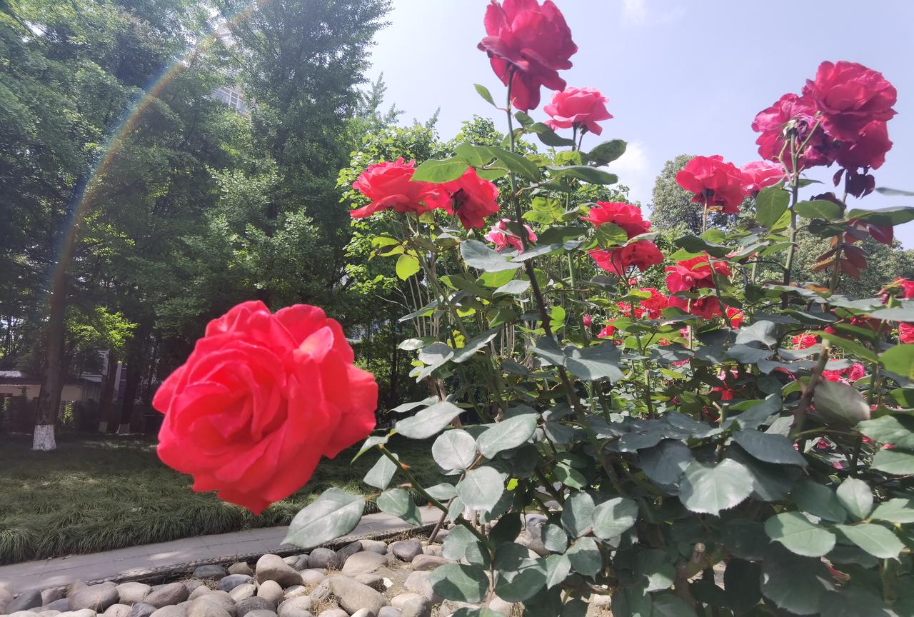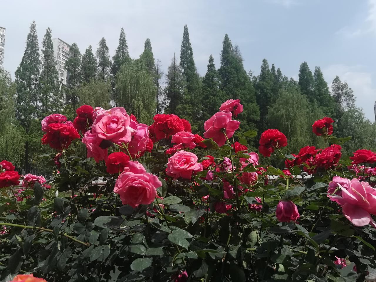 仲春四月的温江公园,满眼是绚丽的花海。我信步来到玫瑰园中,见千余种玫瑰花🌹竞相绽放,便高兴的在花香弥漫的花丛中拍照打卡。