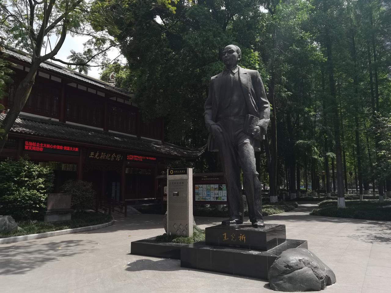 公园历史文化底蕴深厚,其所在地是古蜀鱼凫文明发源地,至今园内还保留了鱼凫城文化遗址等历史元素。广场上有音乐学家王光祈先生的塑像和纪念馆(图2)