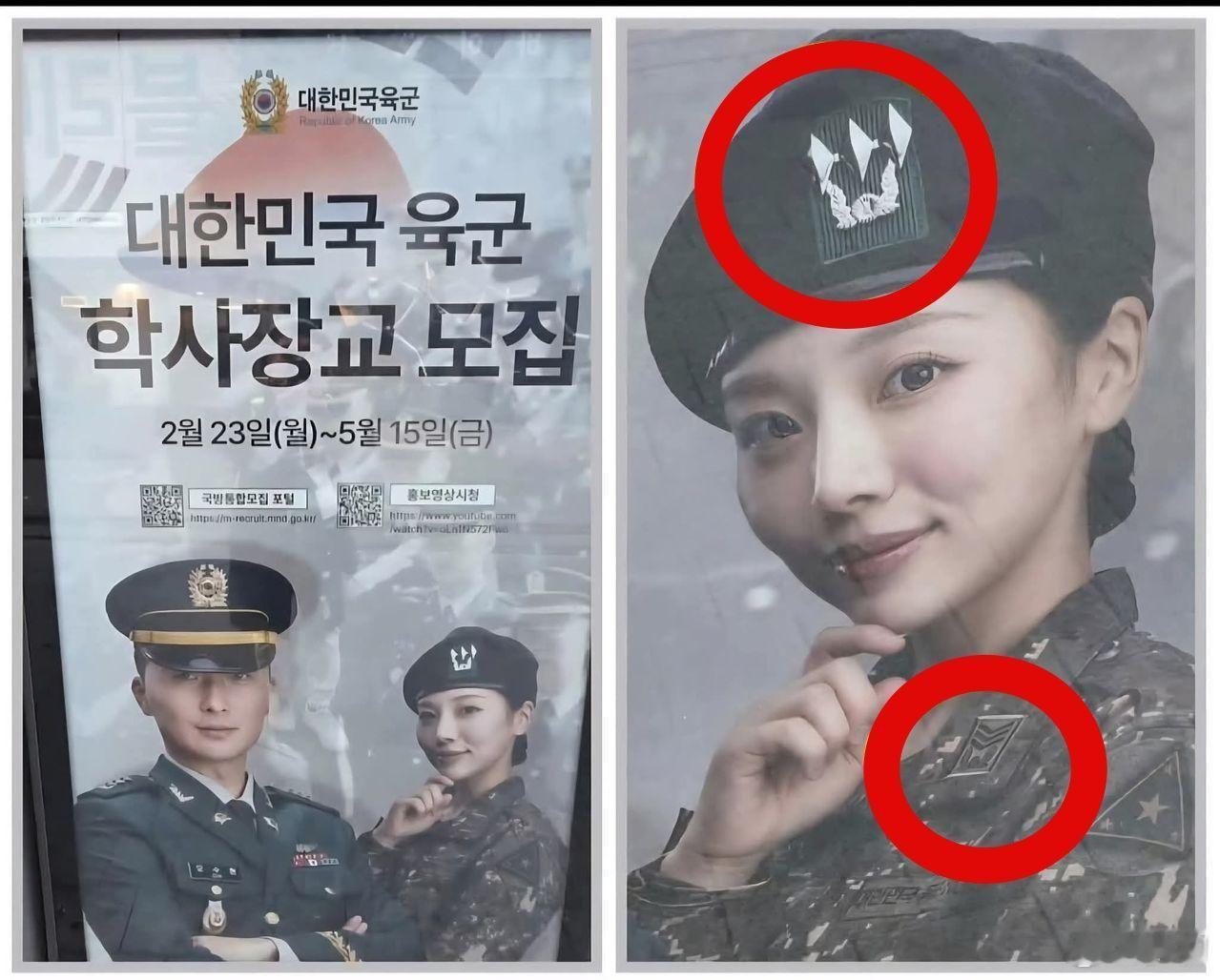 韩国《中央日报》:韩国陆军征兵海报因一名女性军官“军衔错误”和“厌男手势”问题引
