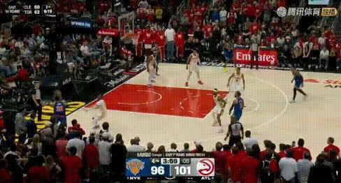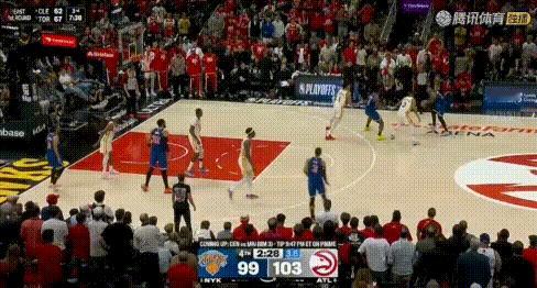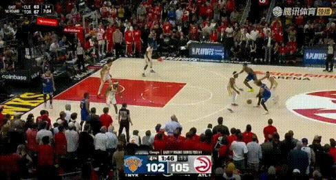 末节OG2次压哨3分,麦克布莱德3记3分让尼克斯追近比分(图6-8)。布伦森2+1让尼克斯首节后首次反超(图5),可惜随后3不沾(图4)。