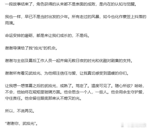 曾舜晞长文感谢与武拾光相遇、 曾舜晞武拾光不说再见温柔又有力量的告别文,曾舜晞对武拾光的理解与深爱,每一句都让人破防。