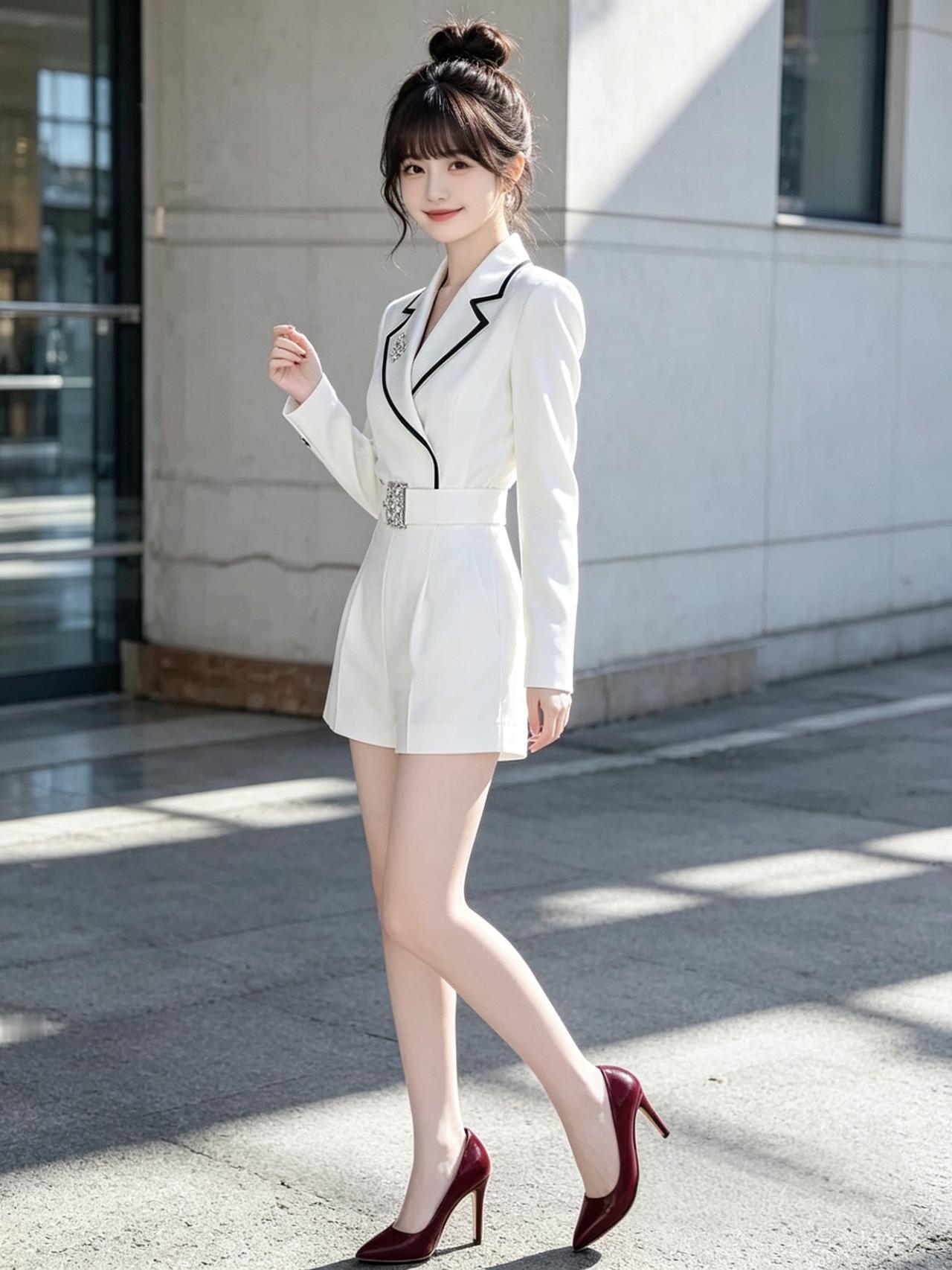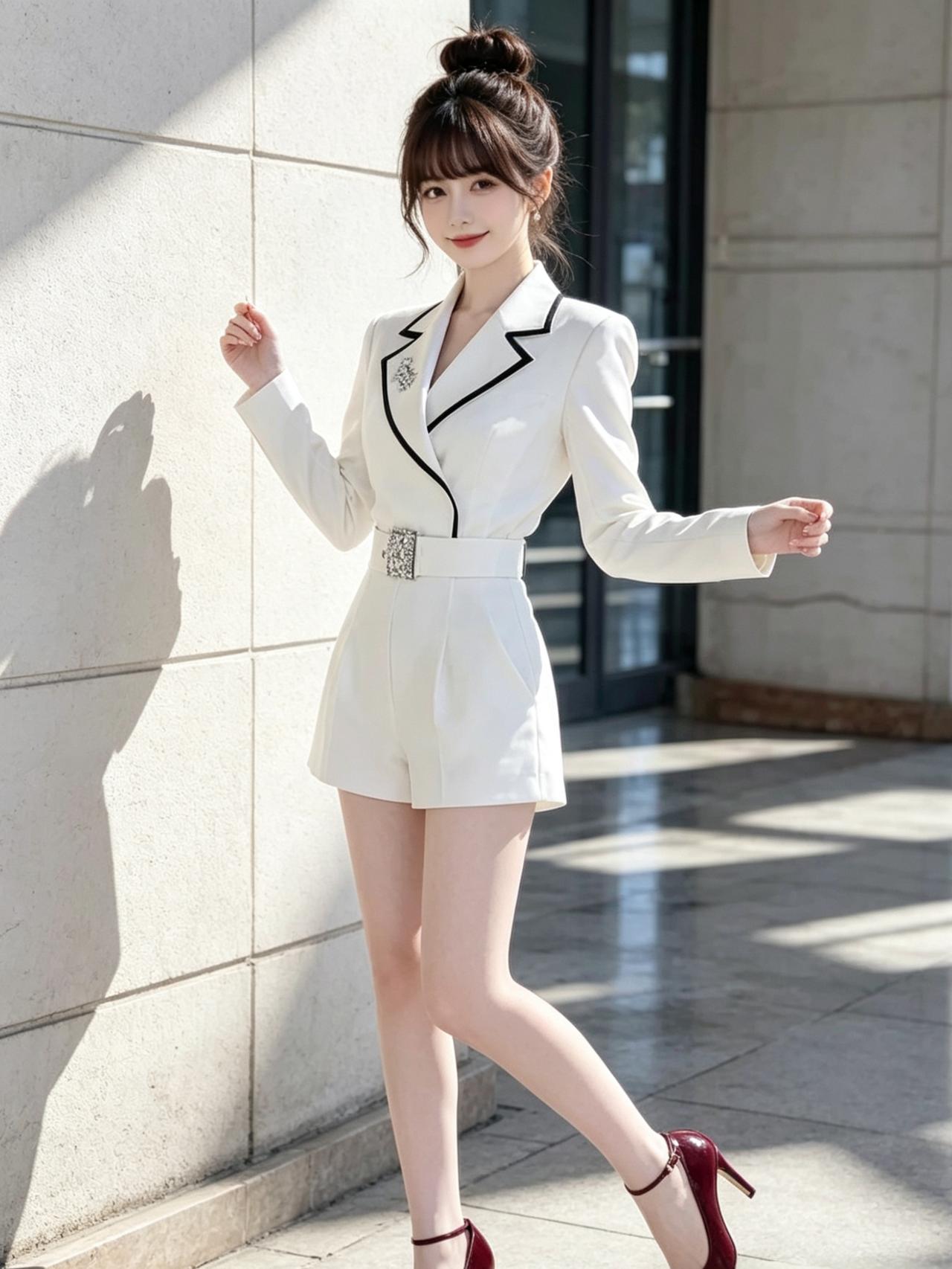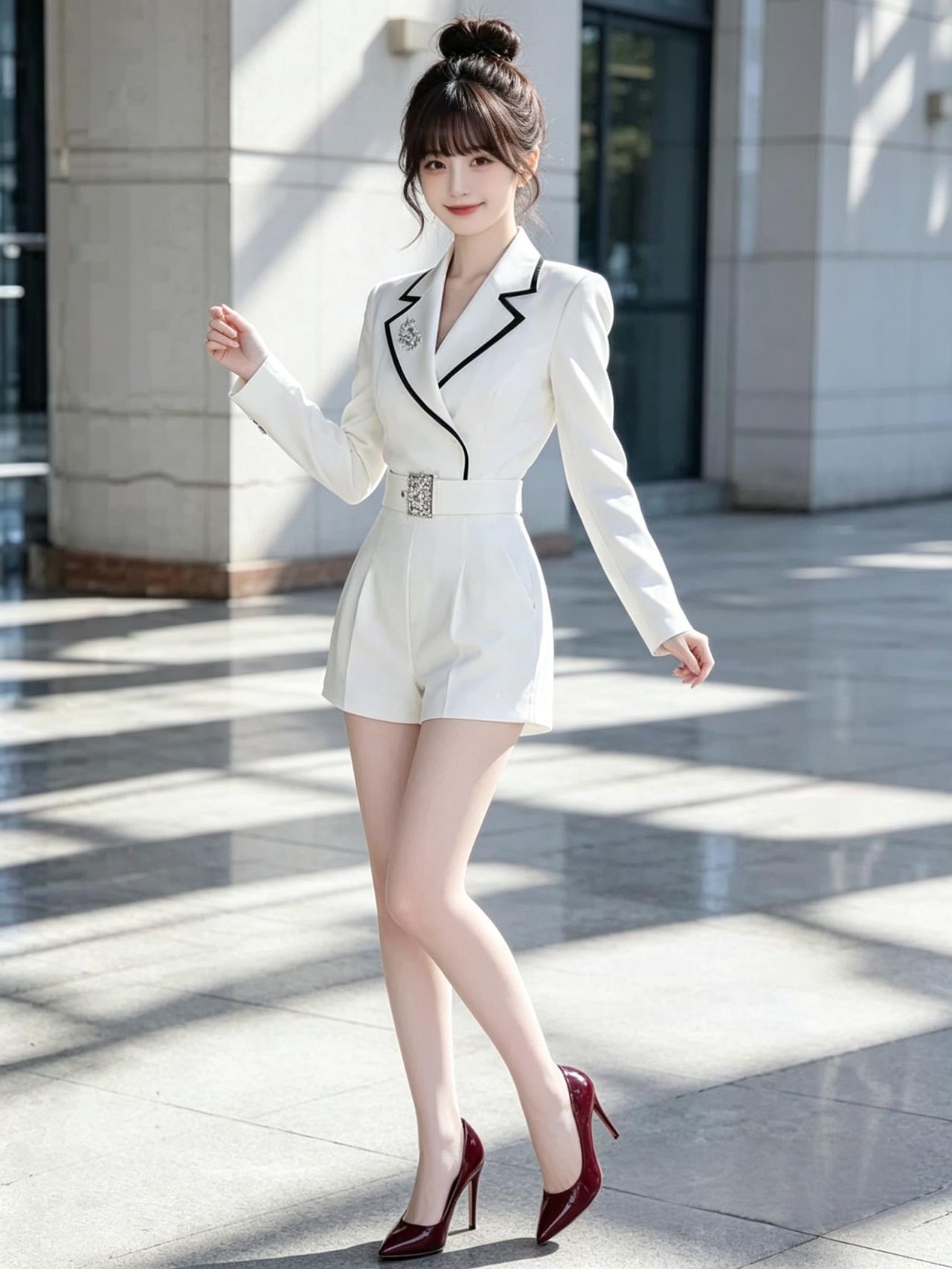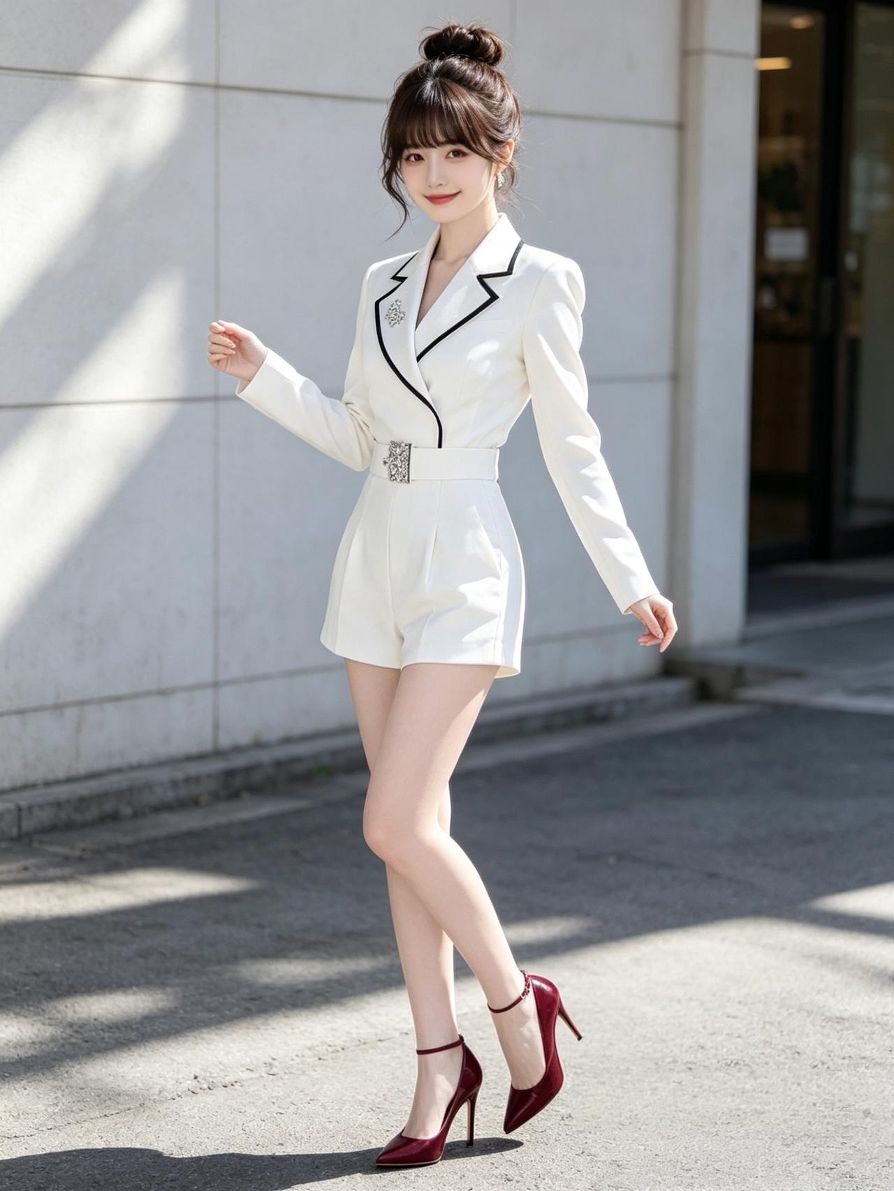 白色西装套装搭配红色高跟鞋,优雅又时髦!👠💃