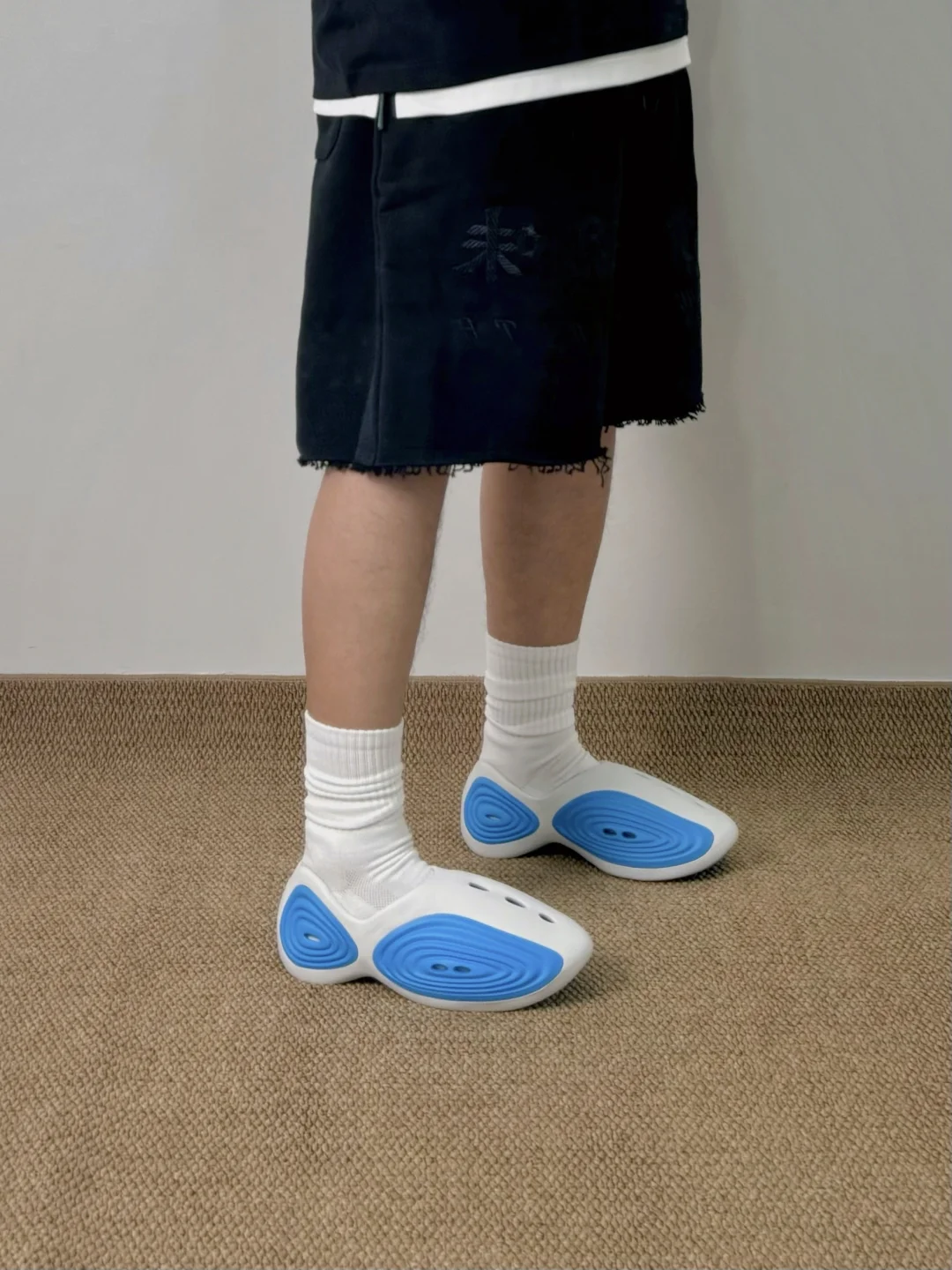 3️⃣能否涉水:没问题,橡胶材质,白色偏硬&蓝色更软