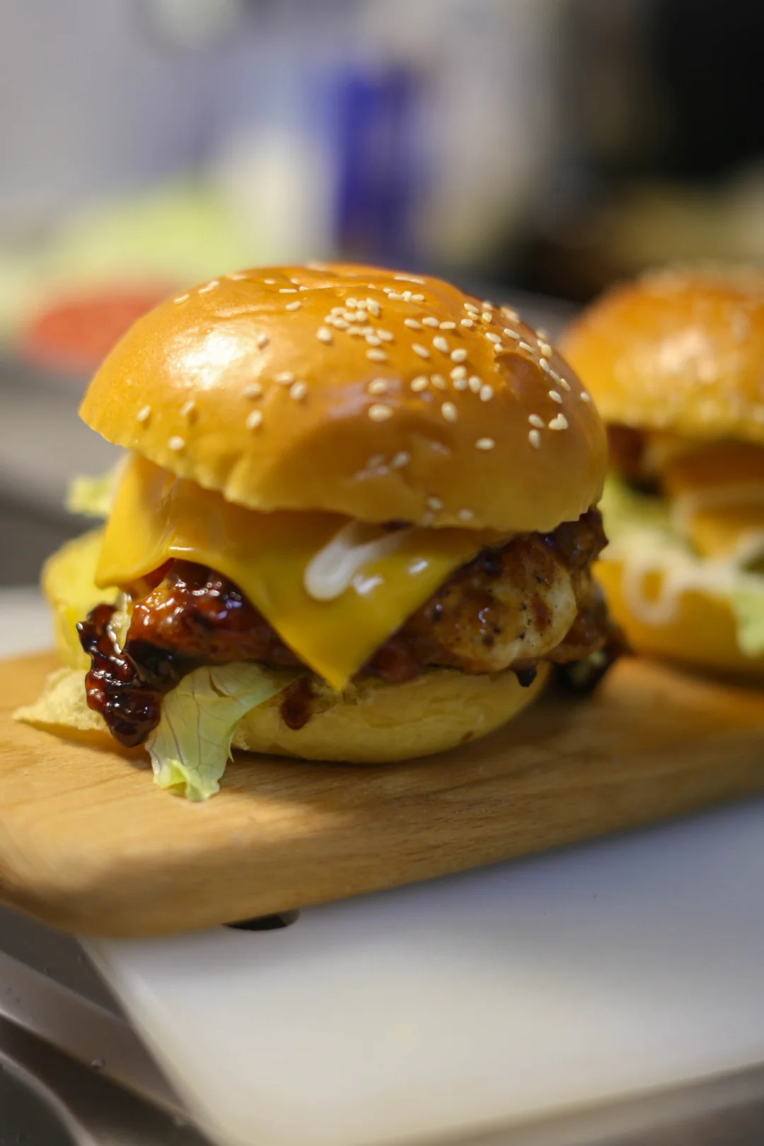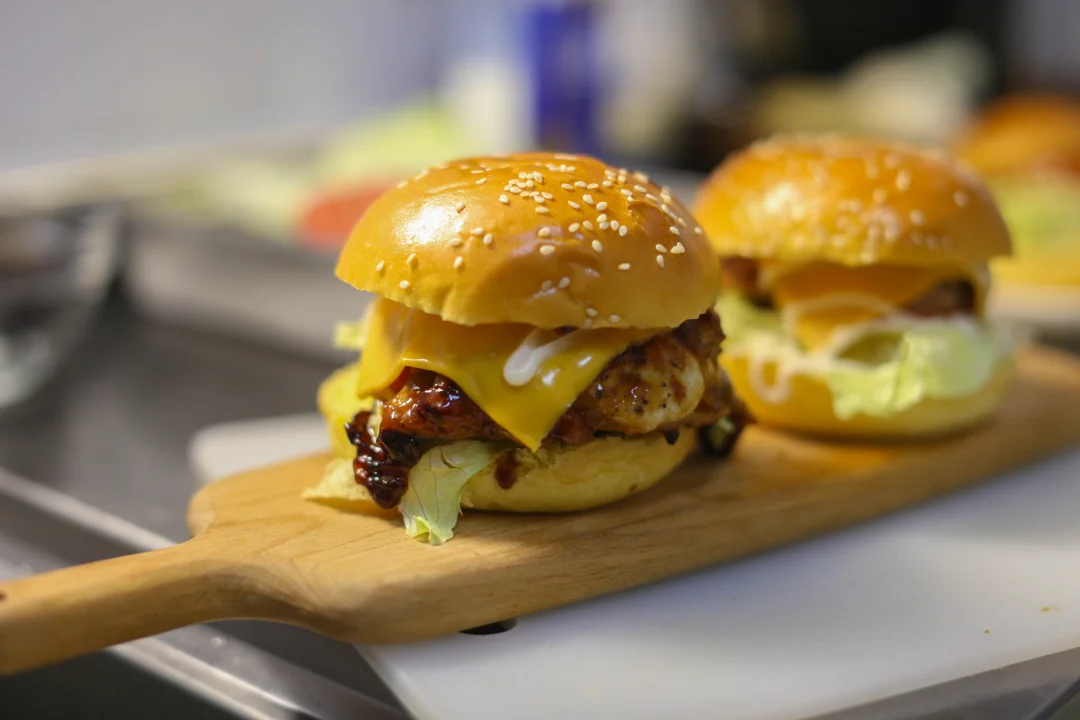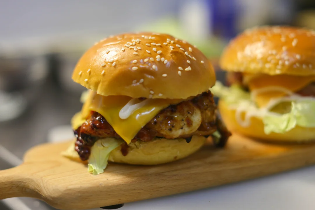 美味的照烧鸡腿汉堡包,二年级小朋友的早餐