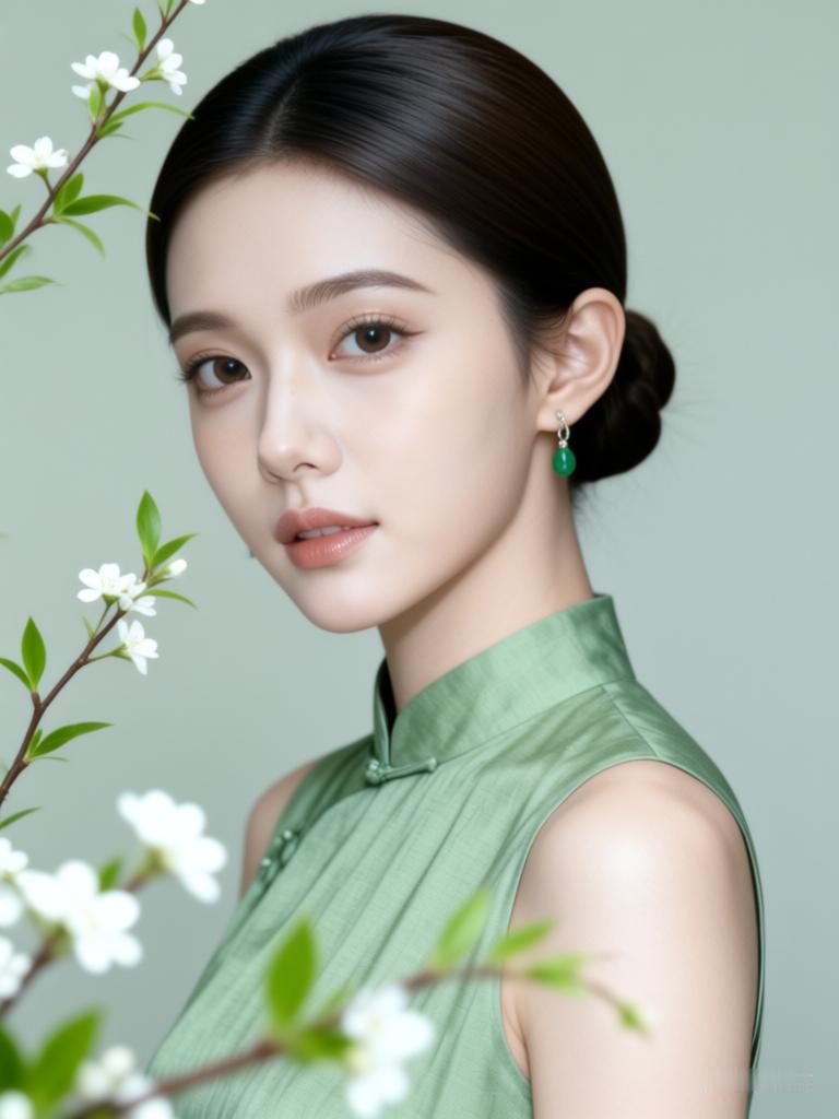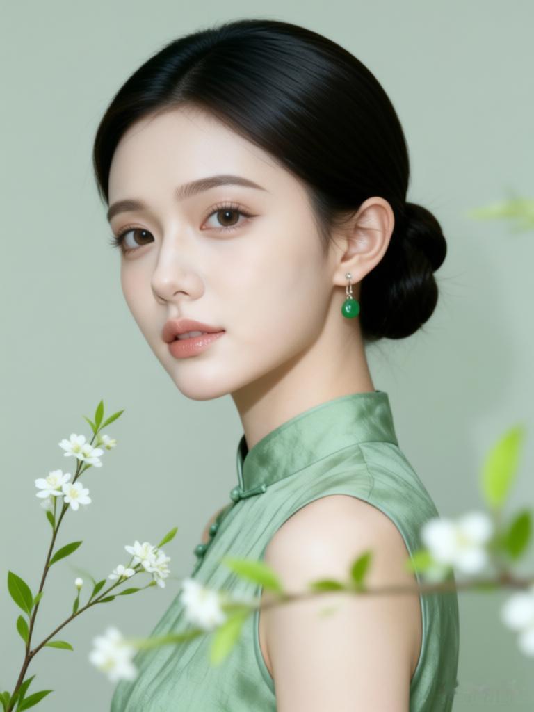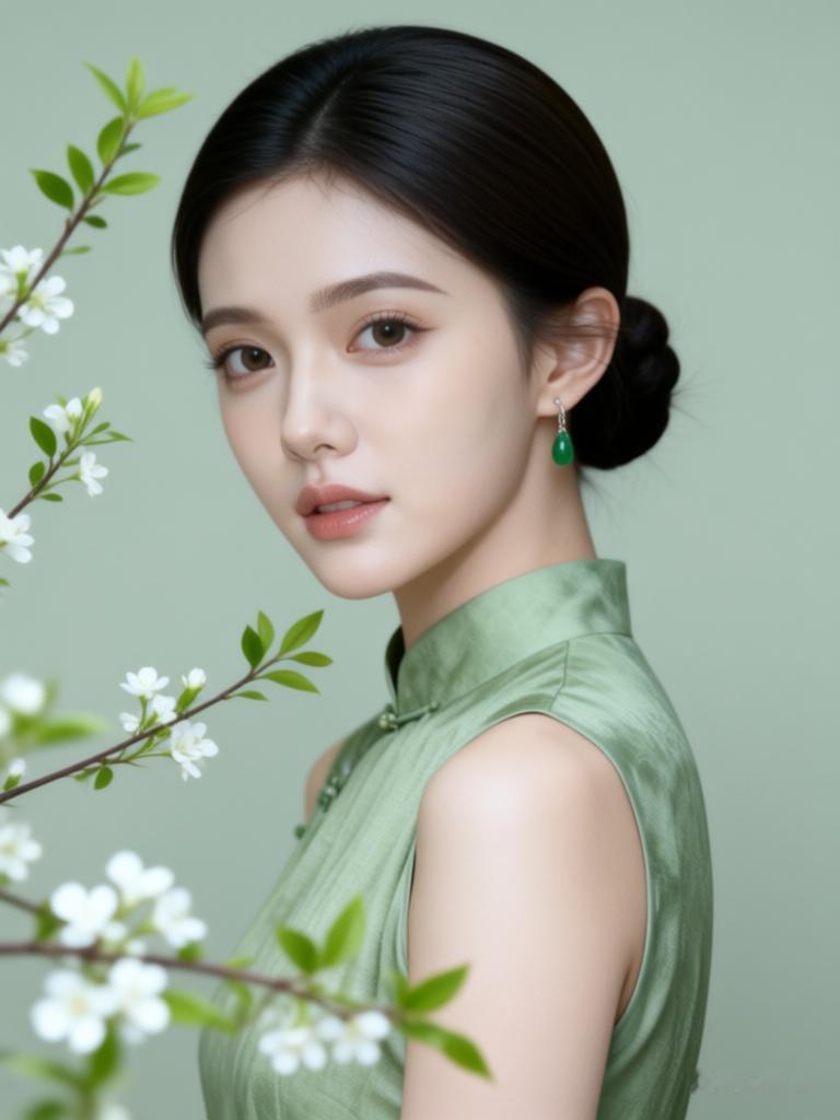 优雅绿衣美人,清新自然之美