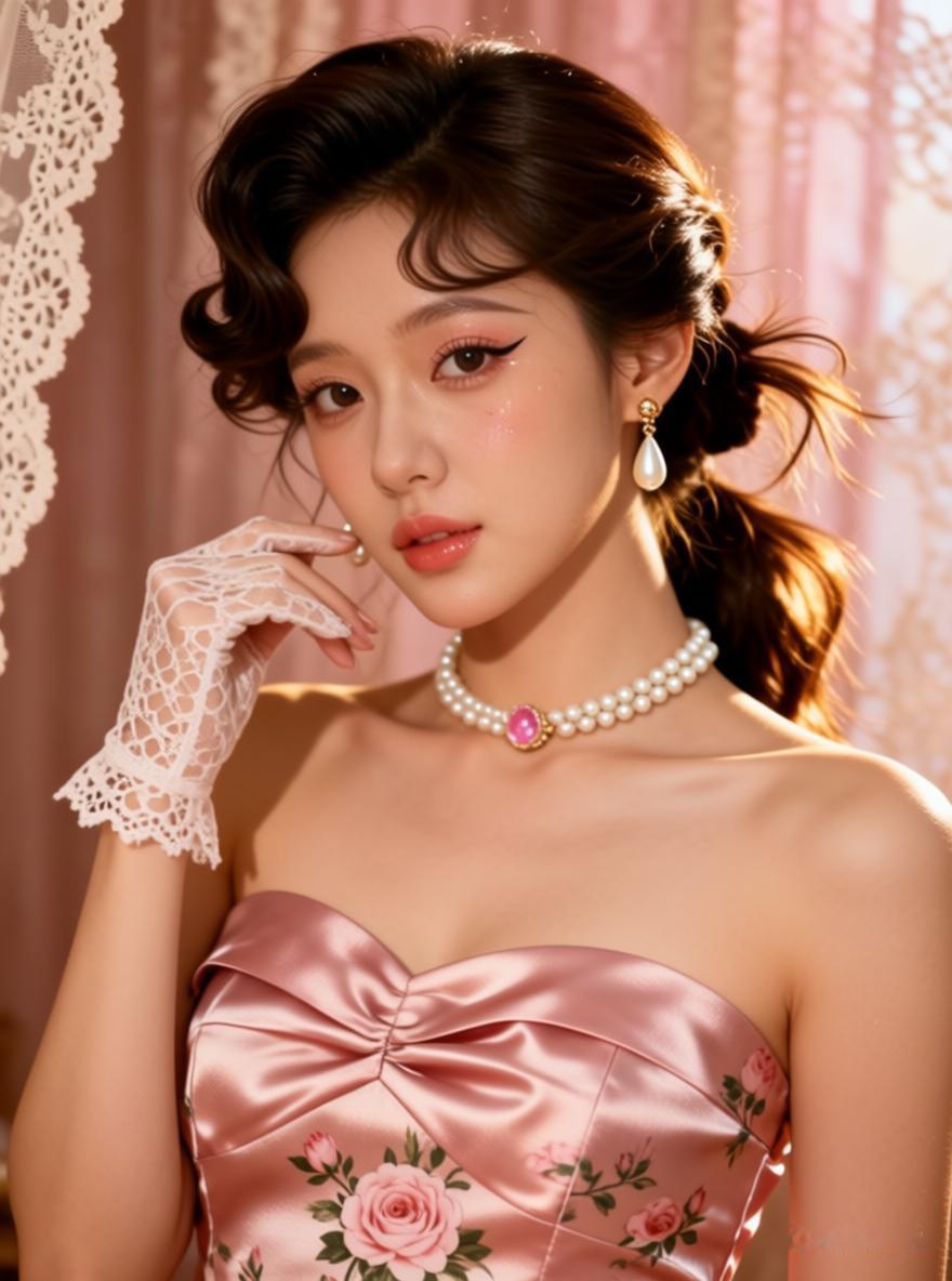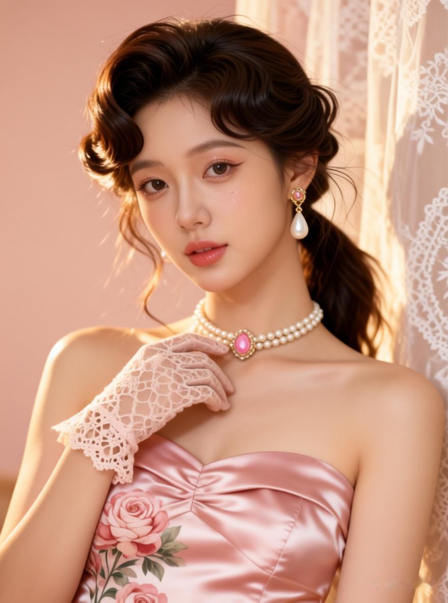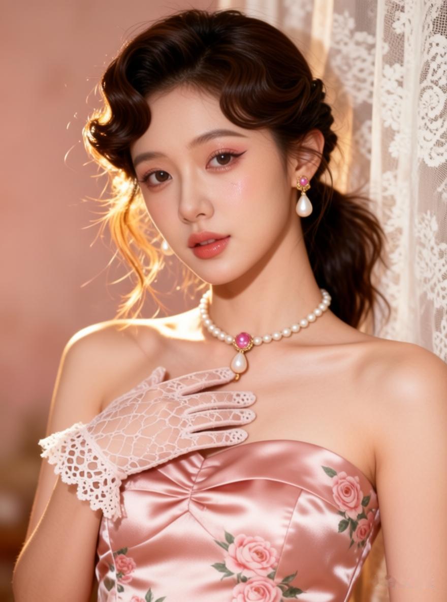 温柔优雅的复古风,珍珠项链与蕾丝手套的完美搭配,尽显优雅气质。