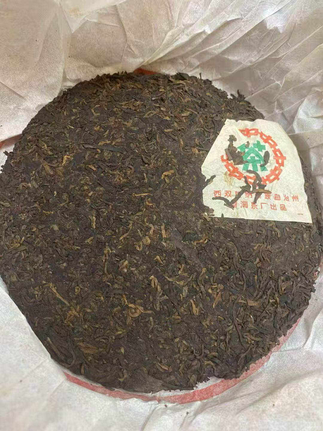 01年勐海茶厂,繁体云绿印熟,一共两批。一批,茶纸分离去了台湾。(特殊时期过去的商品不能有文字),一批国内销售叫普洱饼(图7到图9),普洱饼非常普通,销台这批繁体绿印熟,喝起来愉悦度太高太高了。