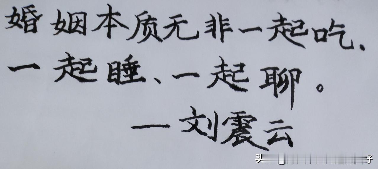 刘震云教授说:“婚姻本质无非一起吃、一起睡,一起聊”。