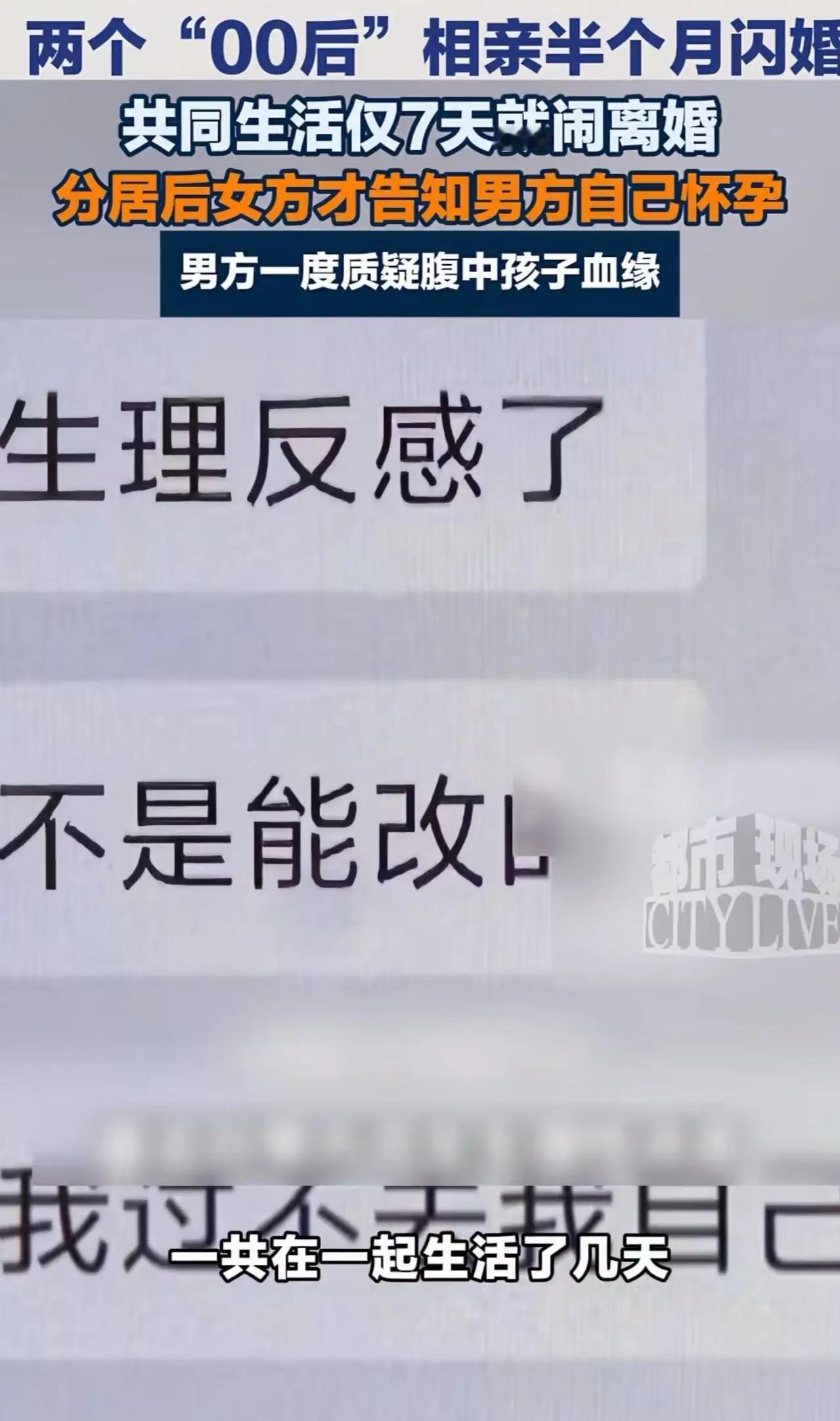 21岁女子和男方闪婚生活7天后想离婚,女方“我怀孕了,但对男方生理性厌恶,不想过了!”男方:为结婚前后花了40万元,认识15天就领证,还是她倒追我的!给完彩礼就生理性厌恶了?”网友:我有一事不明,生理性厌恶怎么怀孕的?