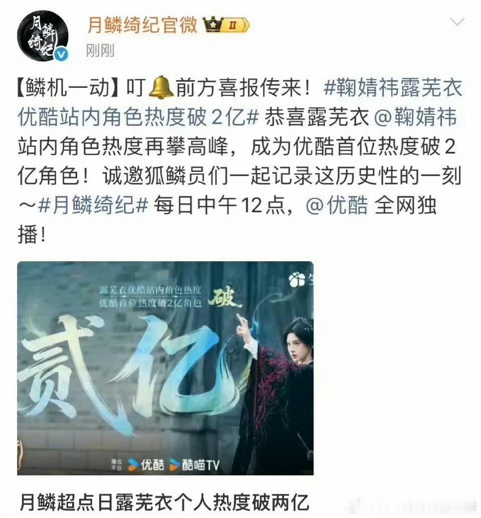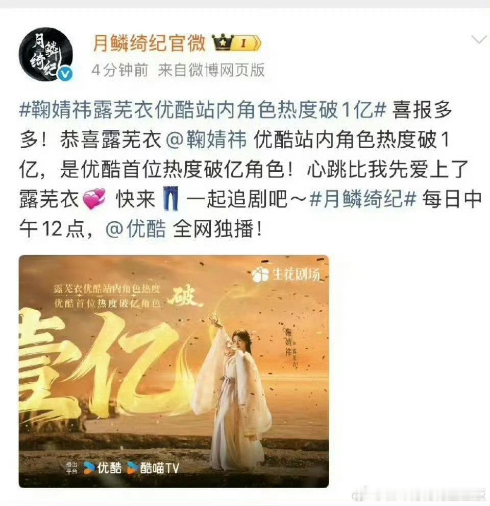 鞠婧祎粉丝保密协议到期了露芜衣收官快乐,鞠婧祎这个伟大,从4月3日至11日,鞠婧祎连续9天稳坐全网在播剧角色热度TOP1,实现了断层式领跑,TOP女就是这么权威!!!