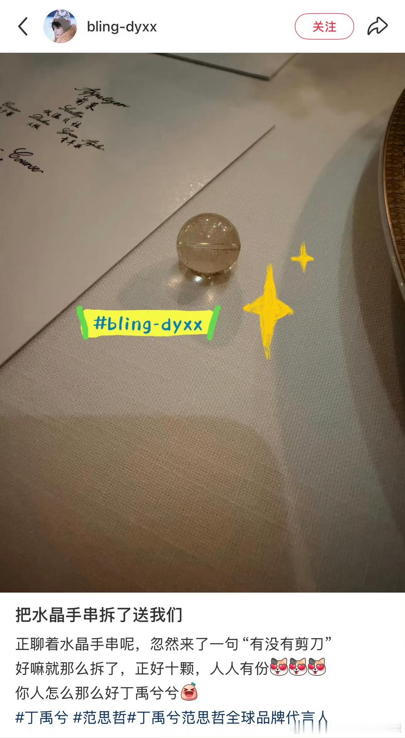 丁禹兮把水晶手串拆了送粉丝丁禹兮咋这么好,每次都是宠粉走心之路,我都羡慕了,海棠宝宝们每天过的是啥幸福日子,可以带我一个不!
