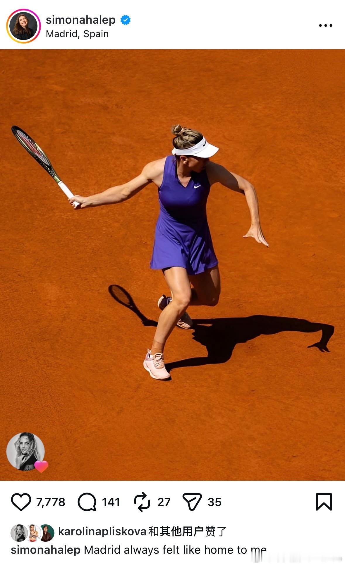 哈勒普发文回忆自己在马德里1000赛的时光,Simona曾经在2016+2017两次登顶马德里!!!马德里对我而言,一直像家一样。