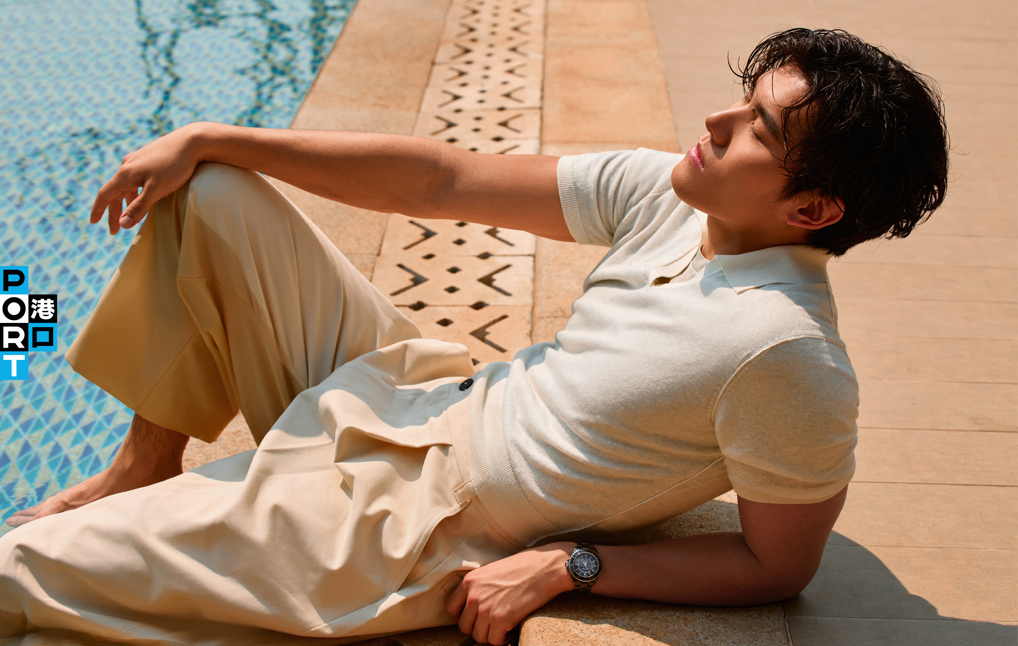 这些运动项目中,存在着各种形态的水,静谧的,坚硬的,激荡的。此次封面中,PORT也以这些“水”来翻译J12的运动精神。因为“水”是最能连接CHANEL J12与当代运动精神的那条暗线,蕴含着刚柔并济的哲学。水无形,却能穿透一切;水柔软,却蕴含万钧之力。通过水之哲学,将J12的专业态度和运动逻辑带入中国本土的叙事中