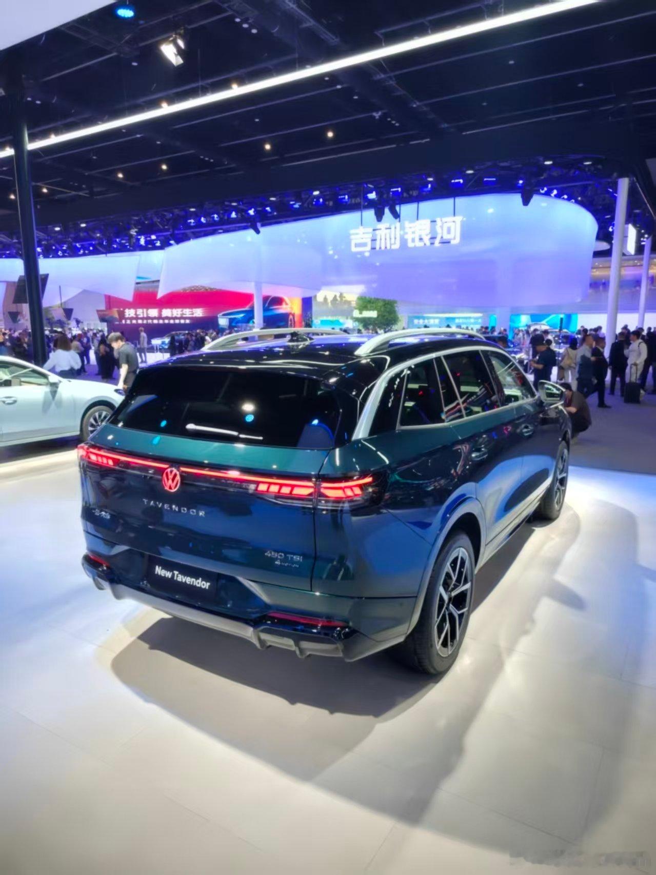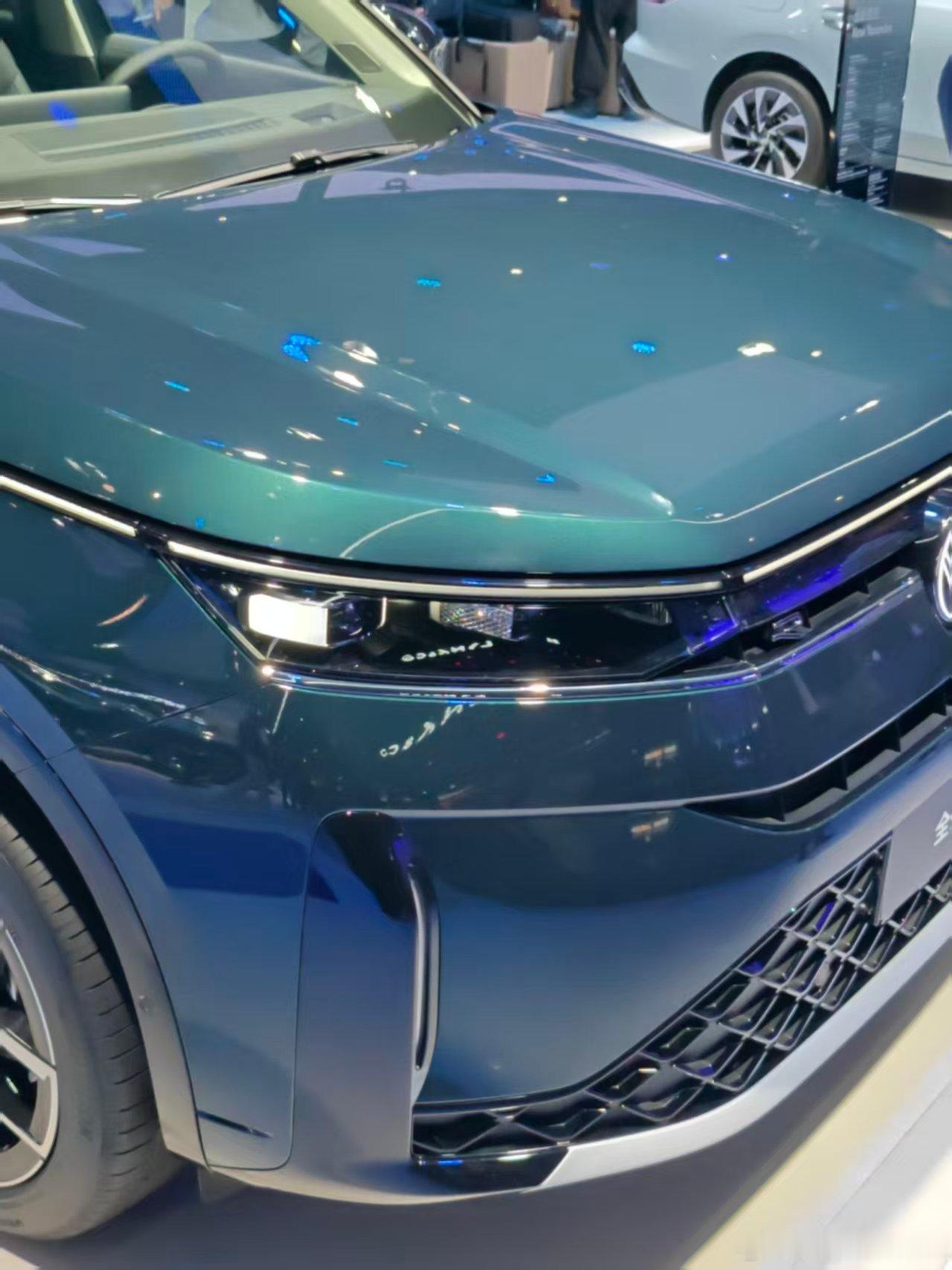 离它不远放了台26款的揽巡,这个墨苔绿的车色由于展台灯光的布置多了一抹蓝色,让整台车显得相当有高级感,不得不说一汽大众在颜色的搭配上还是很有讲究的。
