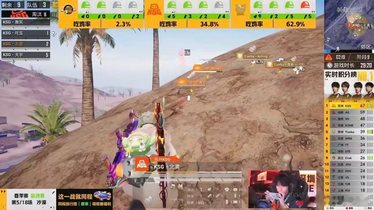 KSG总决赛首日登顶不得不说KSG今天状态真的拉满了,总决赛首日直接拿下二连鸡,