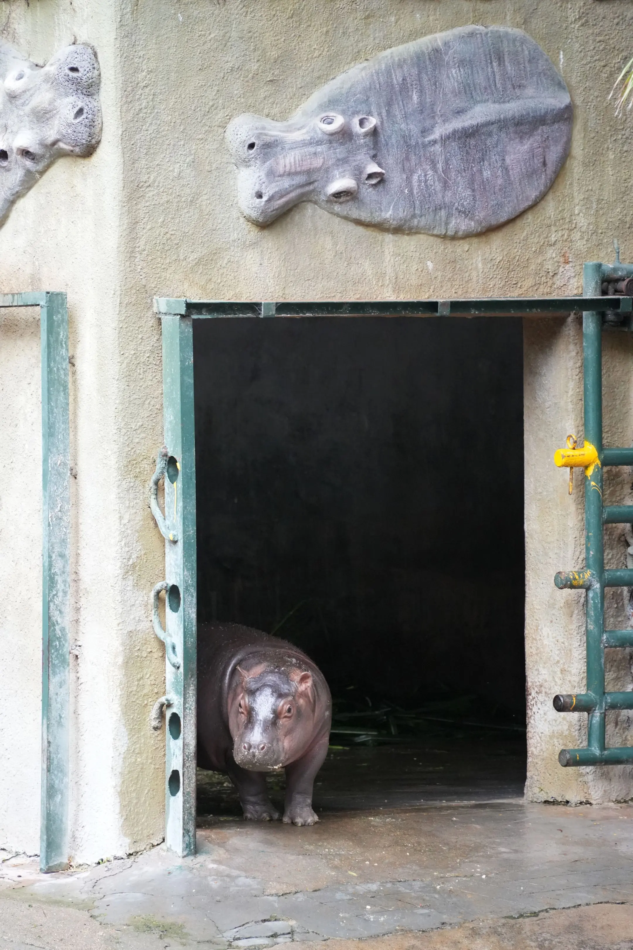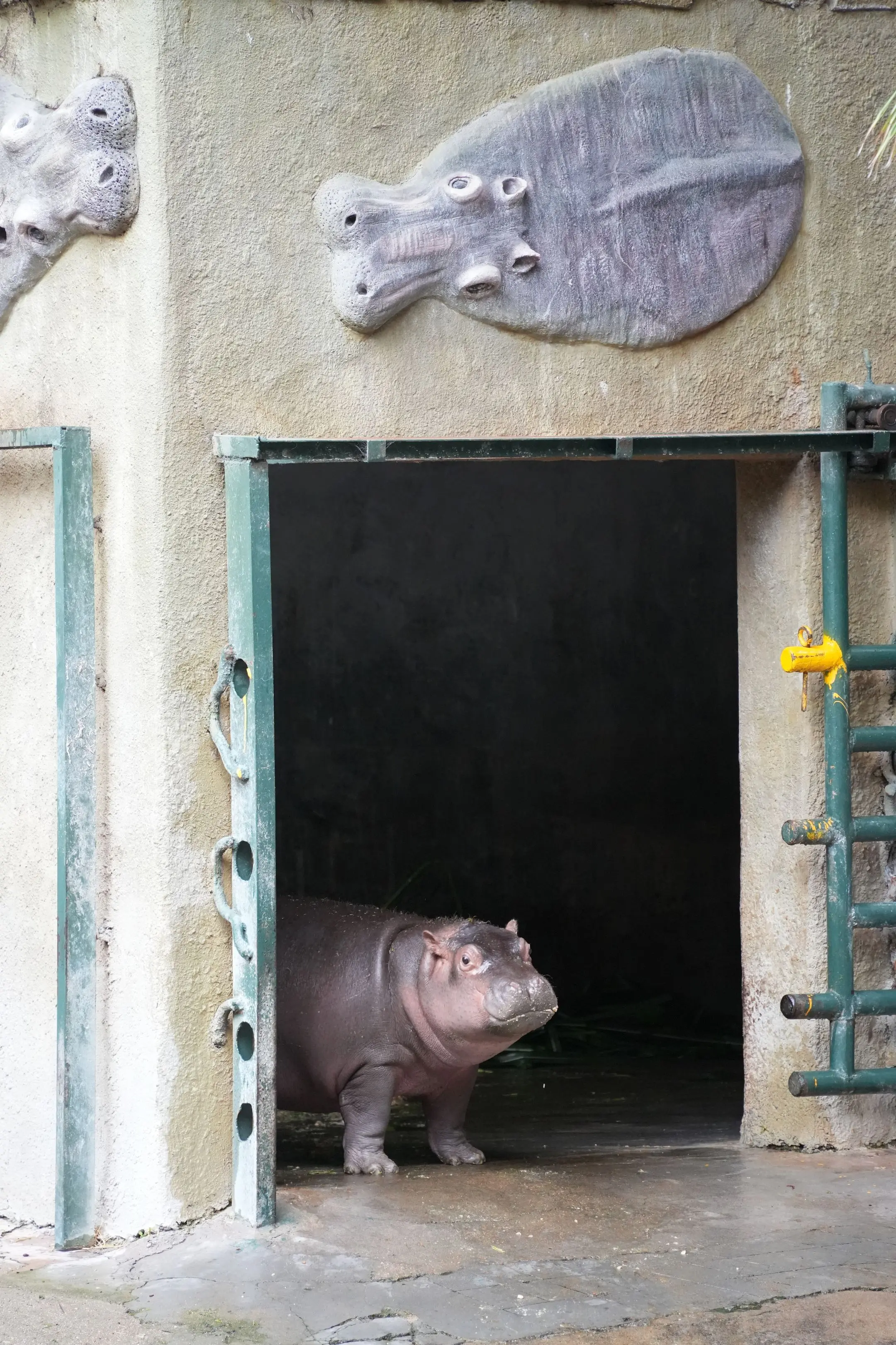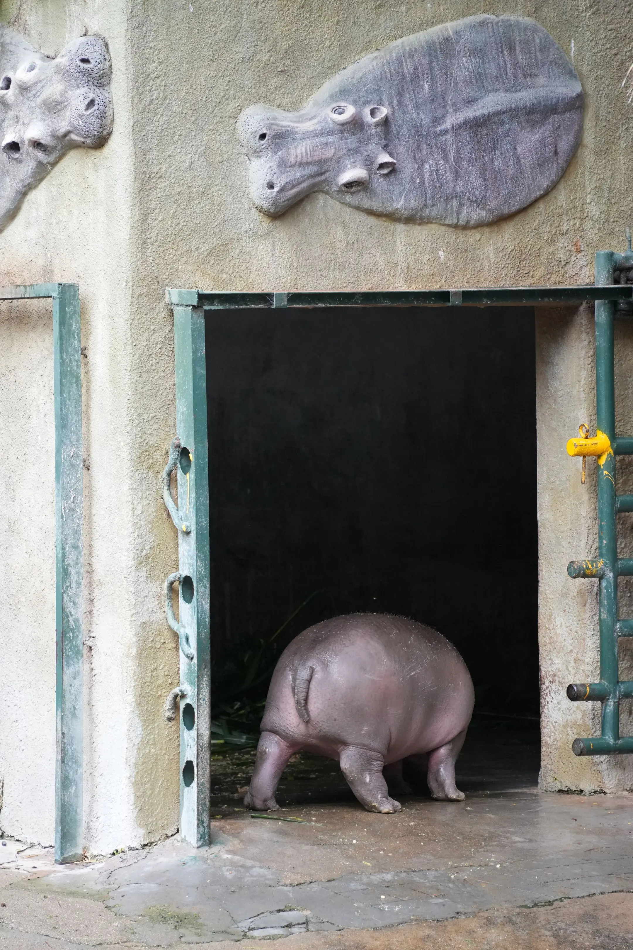 拍到河马妈妈和小河马一起出门。(小河马大了很多,之前还笑它像小乳猪,现在比乳猪大多了,超级可爱。)
