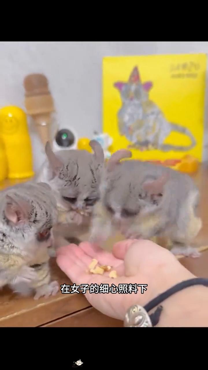 在女子的细心照料下,小家伙们逐渐放下戒备,它们不仅蹦跳着来到女子面前打量,甚至对于女子的爱抚也开始欣然接受,就连投喂过来的食物也会主动去接。有时遇到喜欢的食物,甚至还会伸手索要,小模样真是萌翻众人。