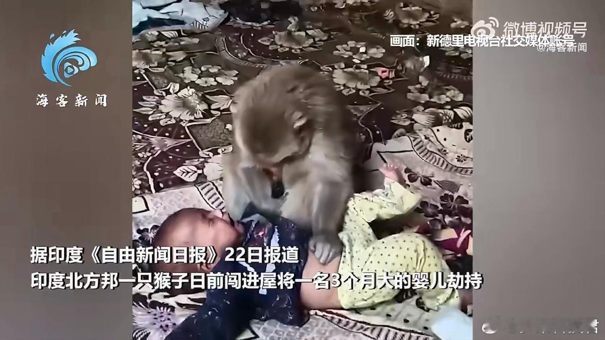 印度一猴子幼崽夭折后闯民宅抓走婴儿一只猴子劫持了一名婴儿,你自己看吧,解释不清楚了