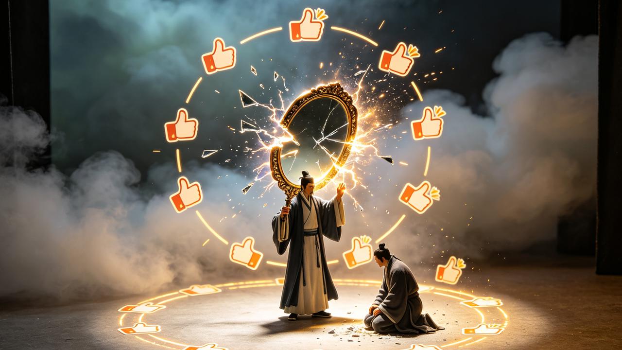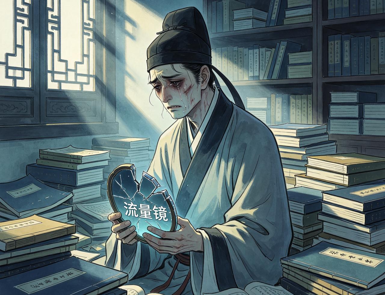 金陵有书生,痴迷功名,偶遇一“算法道人”。道人赠其一面“流量镜”,书生每日对镜朗诵,镜中便显出万千点赞与喝彩。书生大喜,遂废寝忘食,只修“镜中术”,不读圣贤书。三年后,镜碎,书生才学尽失,沦为笑柄。道人再现,笑曰:“算法可推流,不可推才。汝之才华,皆为镜中虚影。”书生顿悟,重拾笔墨,方知真才实学,方能流芳。