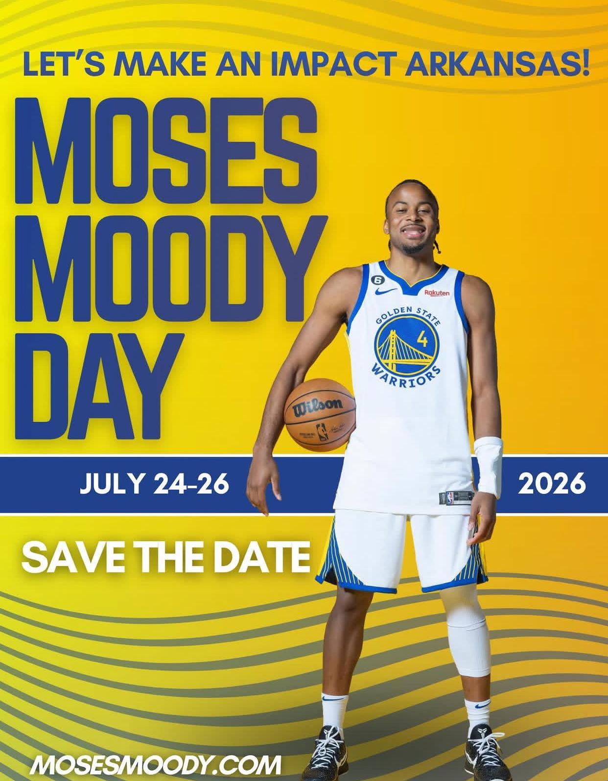 2026年7月24-26日,穆迪将回到家乡阿肯色州,举办回馈社区的公益周末,用行