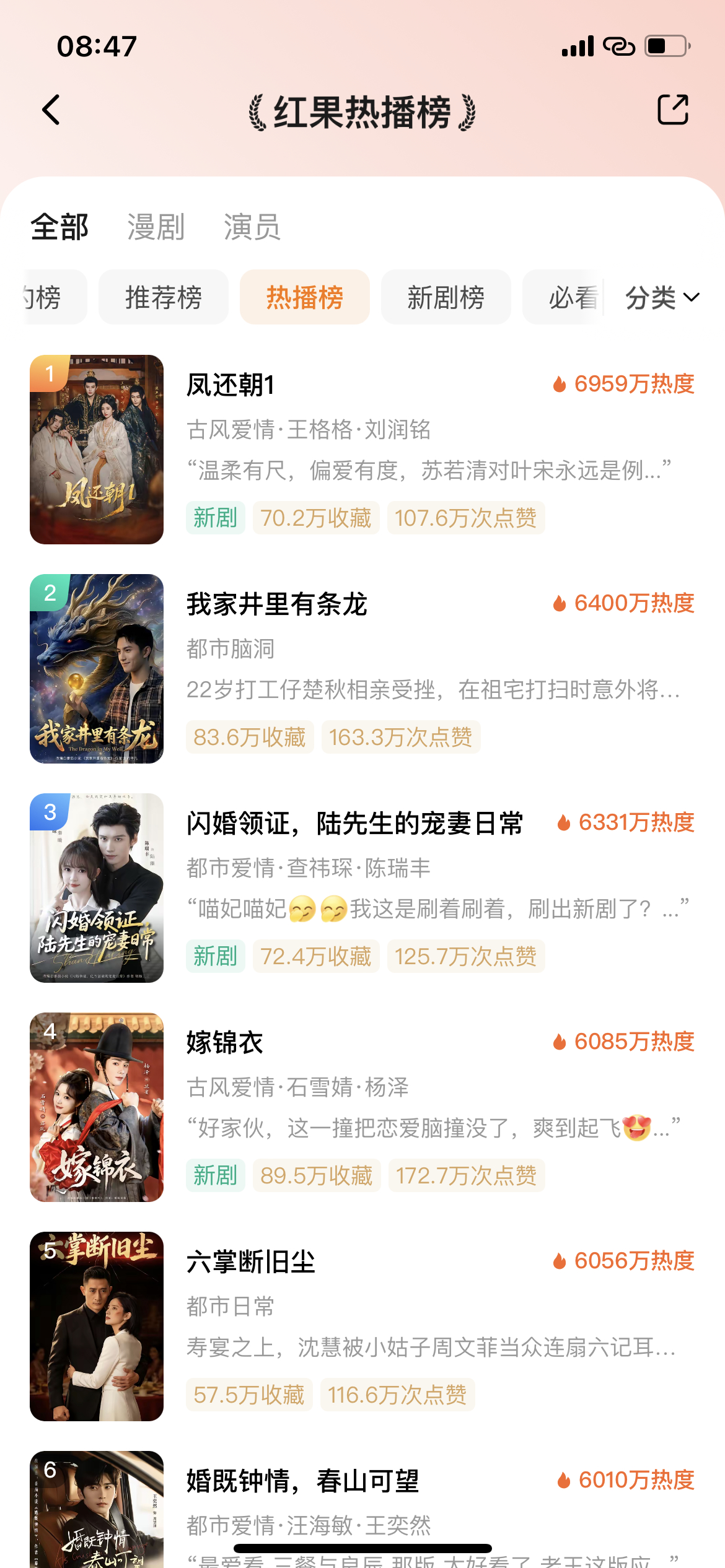 4.25红果热播榜,王格格刘润铭双头部古装持续霸榜第一,除了AI男频和古装女频,其余题材均为“先婚后爱”,这个题材拍得细腻,底盘就是6000。最近有三位腰部演员表现亮眼——王奕然、朱小雪和石雪婧。王奕然很神奇的是嘎嘎上剧但是红果粉丝数就是不涨,目前才80万。