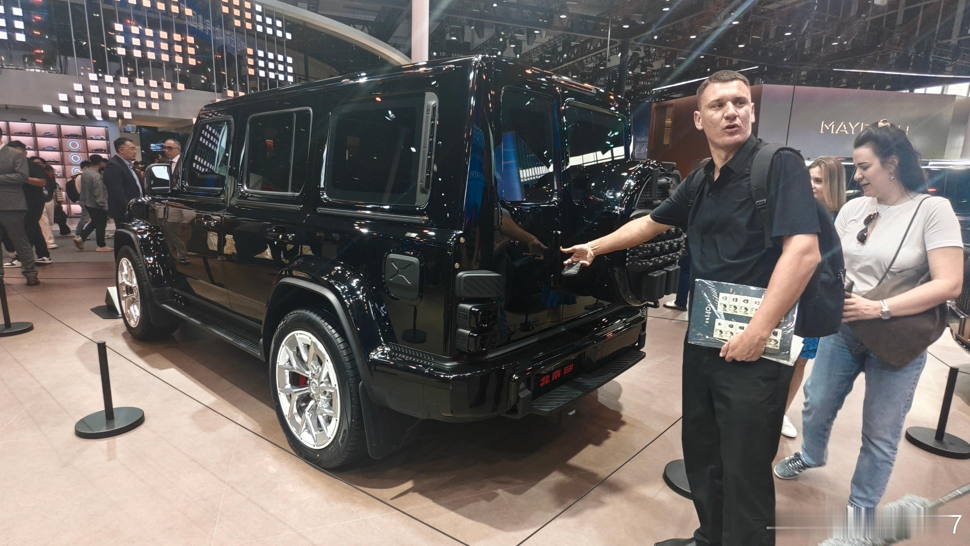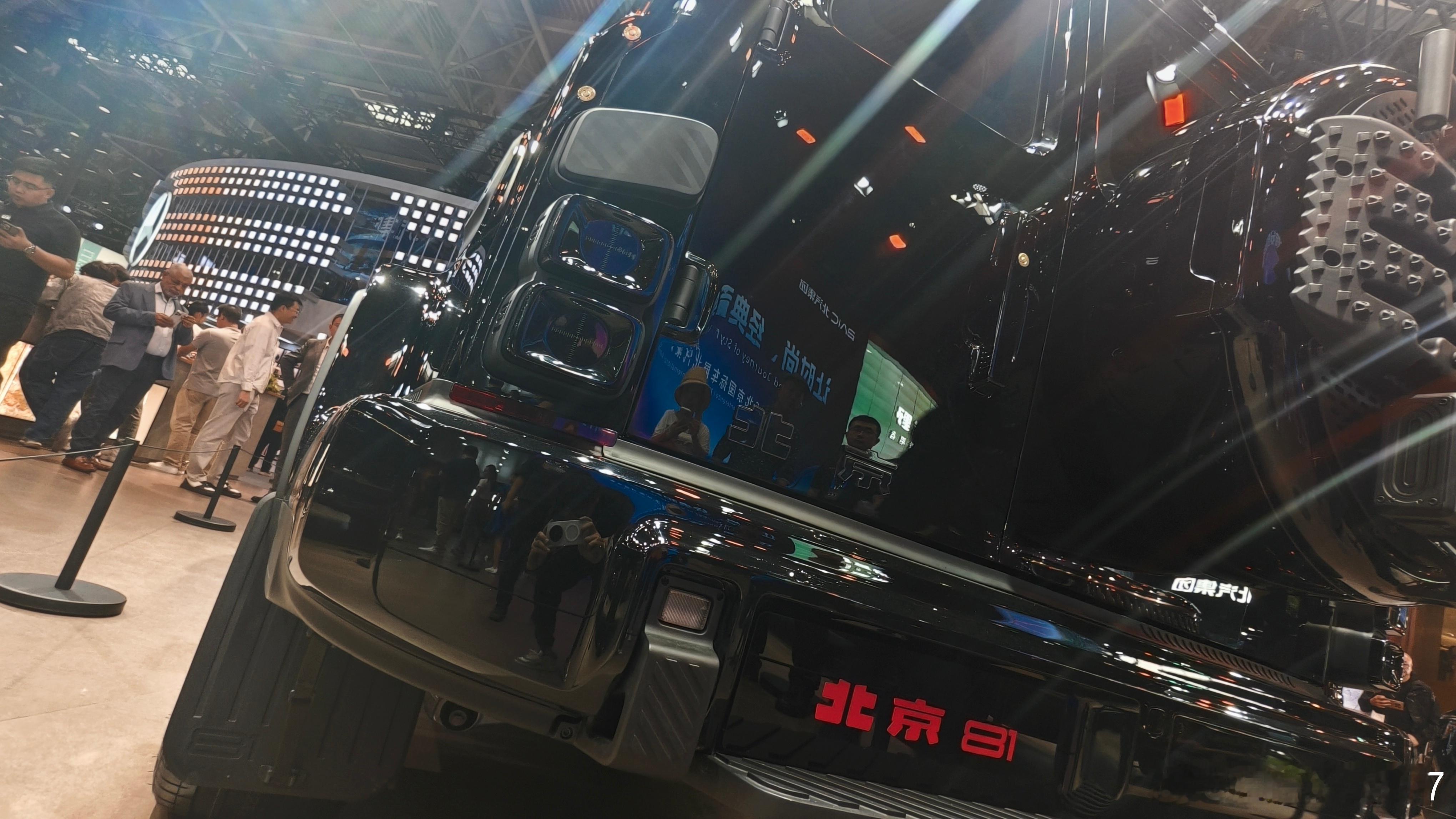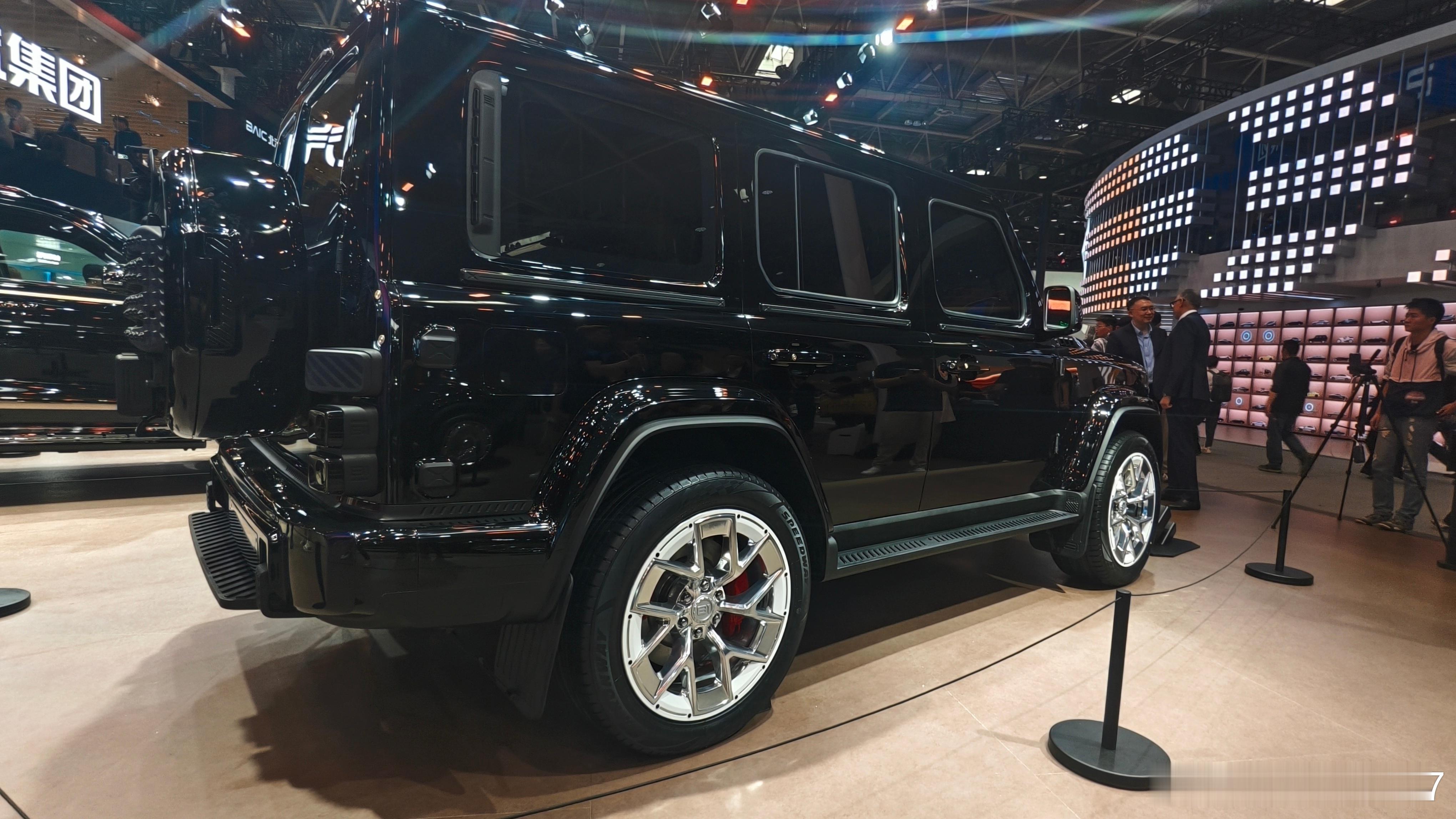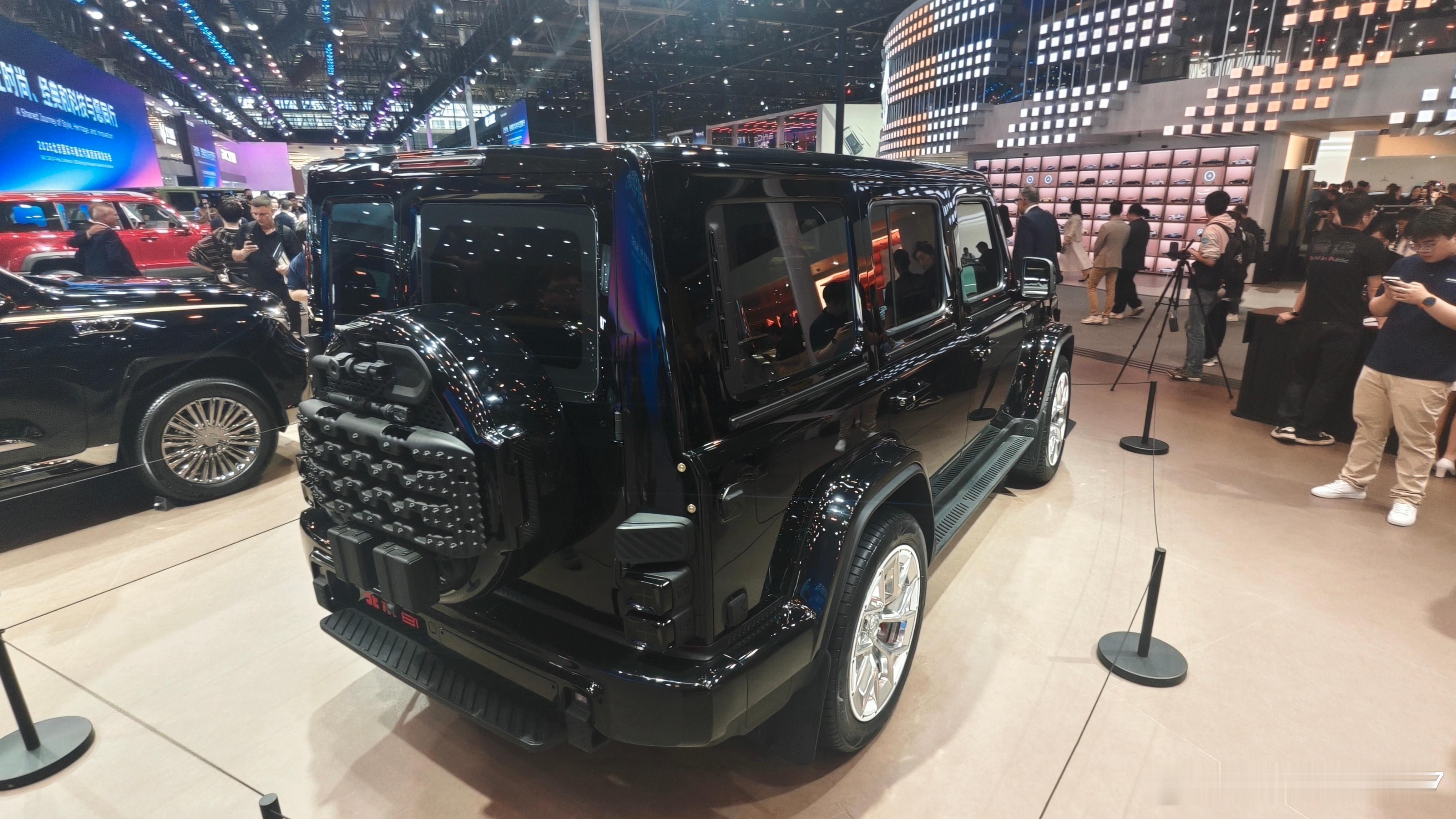 北京 81 传承二代勇士正统方盒子造型,前脸采用长城城砖造型的五孔阵列式中网,配合狙击枪瞄具式圆形大灯,将中式文化底蕴与战术质感融为一体,尽显中国硬核力量