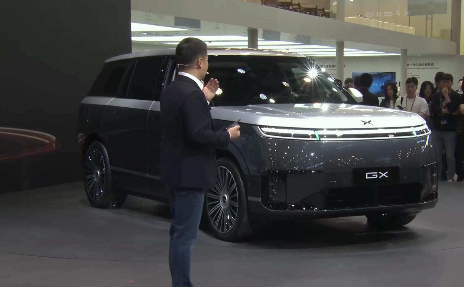 小鹏展台GX稳稳占据C位,车长摆在那气场确实不一样,昨天还发布了新颜色昆仑云境,这个新双拼色在展台灯光下质感很高级,15层漆面打磨出来的光泽非常细腻。