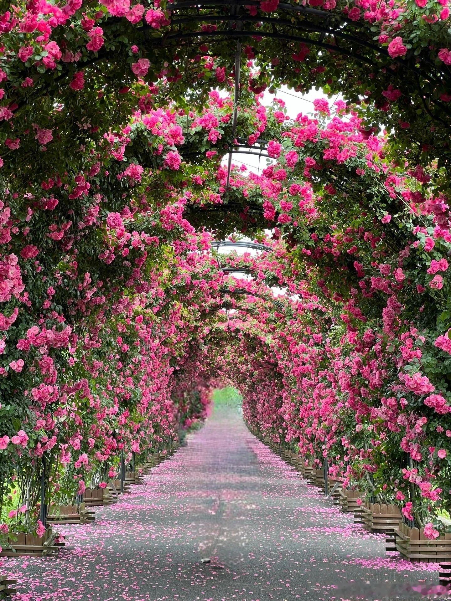 上海广富林郊野公园藏着280米蔷薇隧道,粉白红的蔷薇一簇簇垂落,绿叶点缀其间,像闯入童话花廊。光影透过花瓣,随手一拍都是电影感画面。盛花期也就这十天左右,喜欢浪漫的快冲,错过就得等明年啦!📍上海广富林郊野公园,地铁9号线松江大学城站转公交15路到广富林路三新北路站,从2号门进就能邂逅这份美好~ 🌸