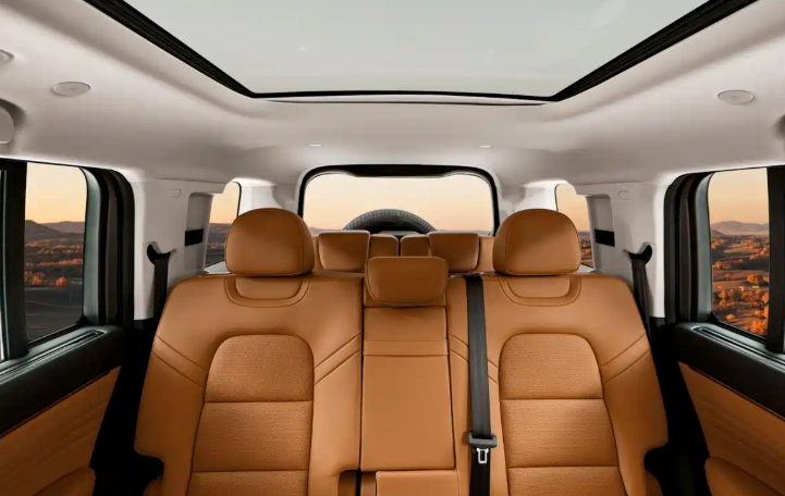 座椅布局2+3+2。第二排可以前后滑动,第三排坐成年人短途没问题,小孩更不用说了。重点在后两排全部放倒——纯平,直接变成一张双人床。后备箱容积从59L扩展到1549L,什么概念?三代人出游的行李、婴儿车、露营装备,一股脑塞进去还有富余。