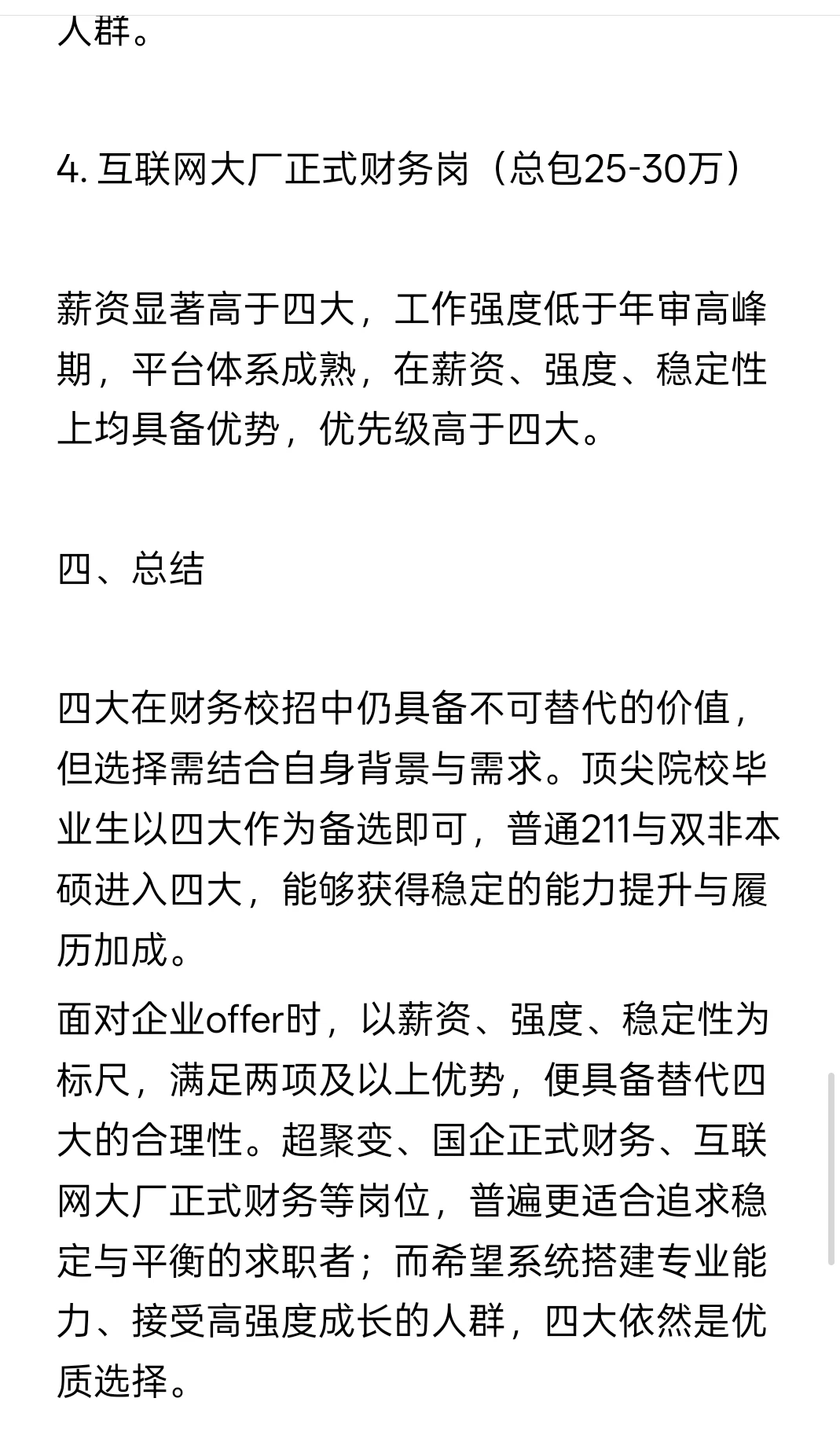 博主在这个层级,双非背景在校招中通常面临更严格的学历筛选,而四大对学历的包容性相对更高,重视综合能力与专业适配度。对于这一群体而言,四大是能够显著提升履历背书、拓宽就业边界的优质平台,具备长期职业价值。