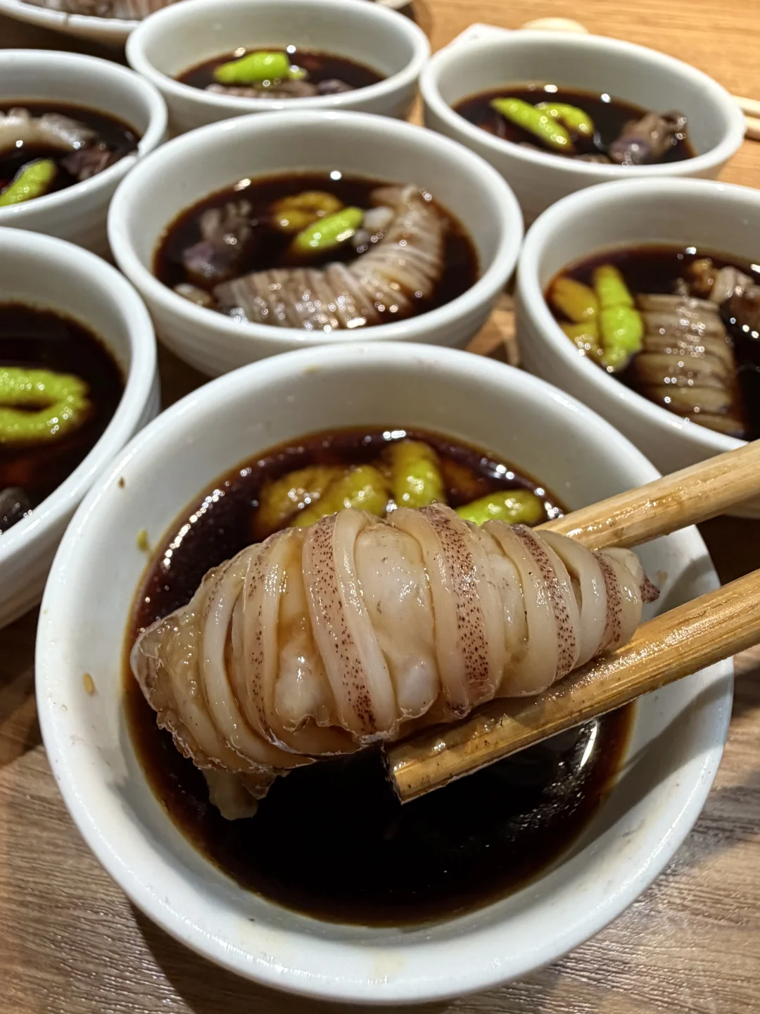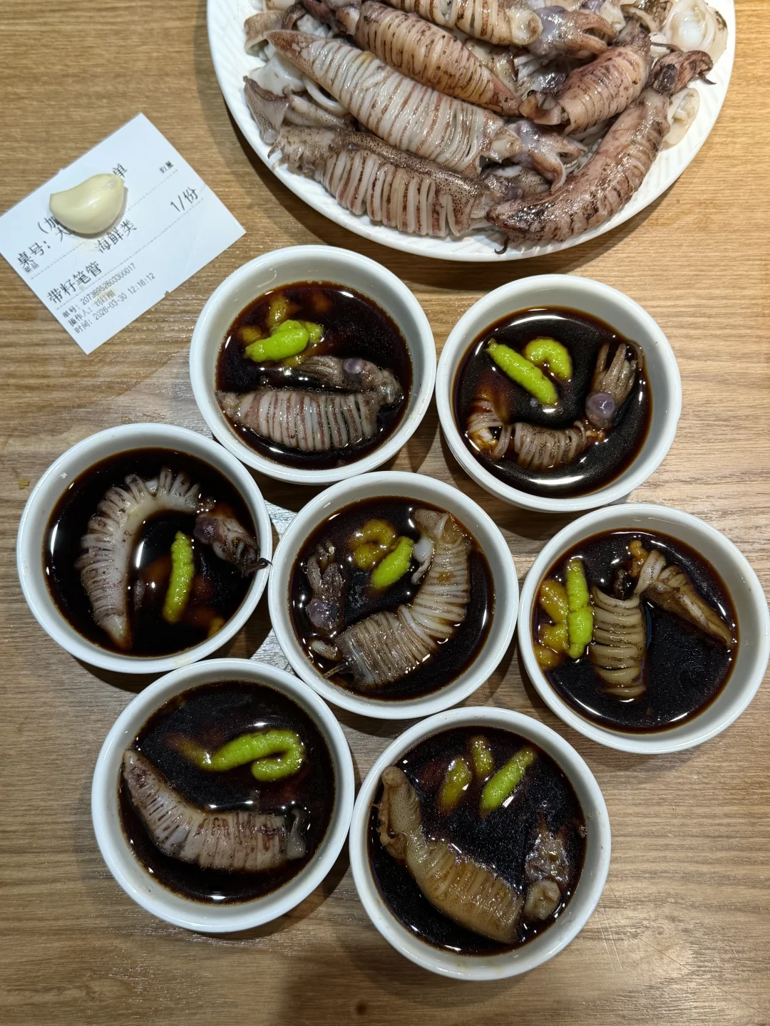 白灼带籽笔管鱼记得点!简单的蘸碟配芥末就没美味!