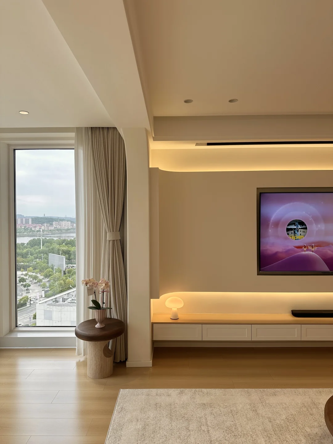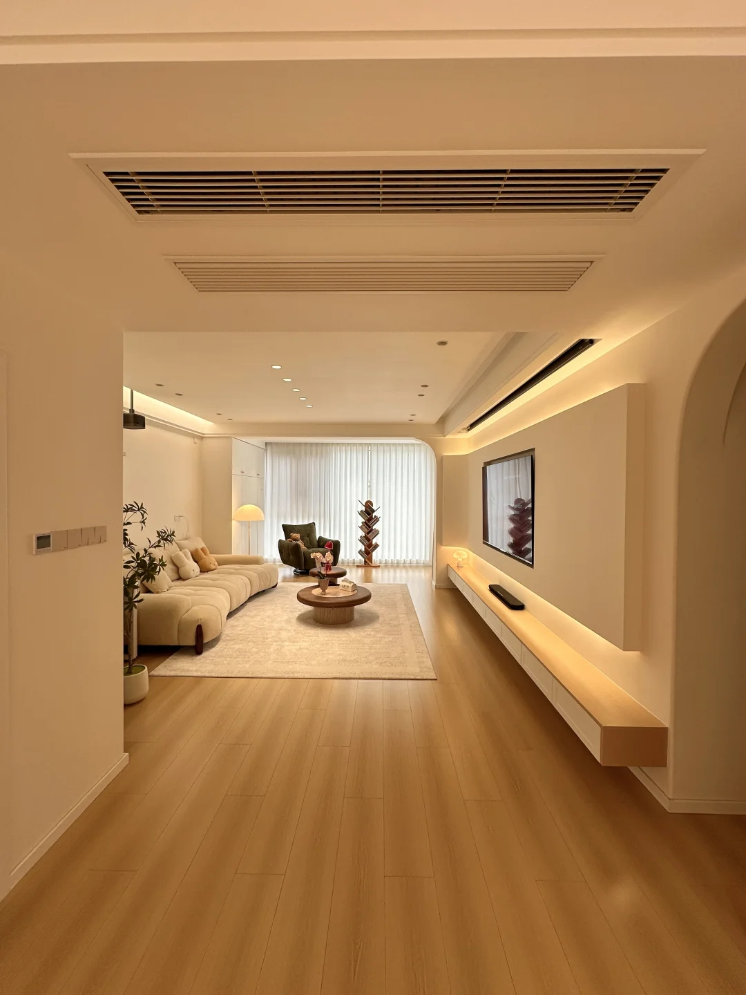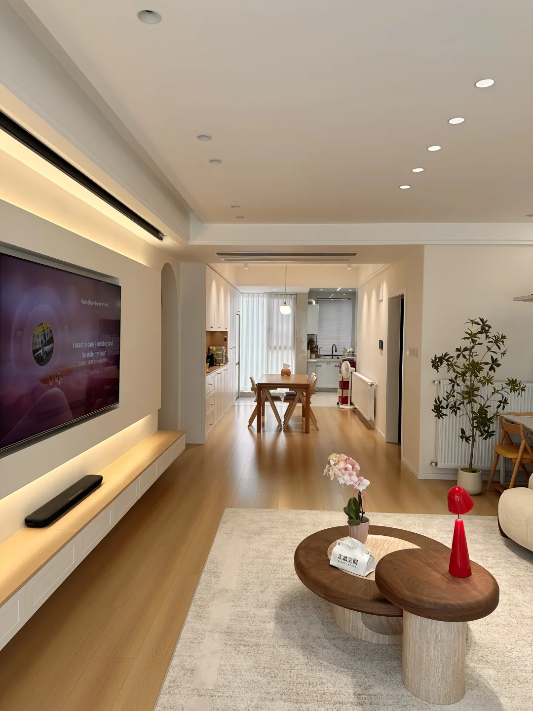简简单单的大白墙➕木地板通铺,极简的硬装,软装搭配才有了更好的发挥~