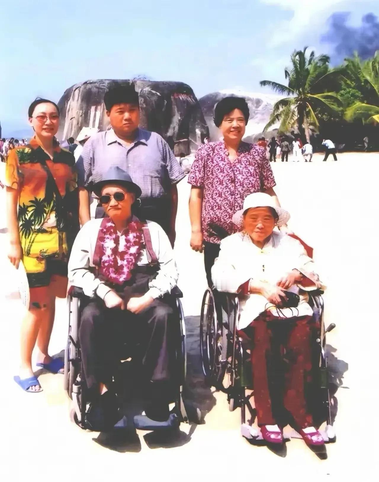 照片前排两位坐着轮椅的老人,左侧是毛岸