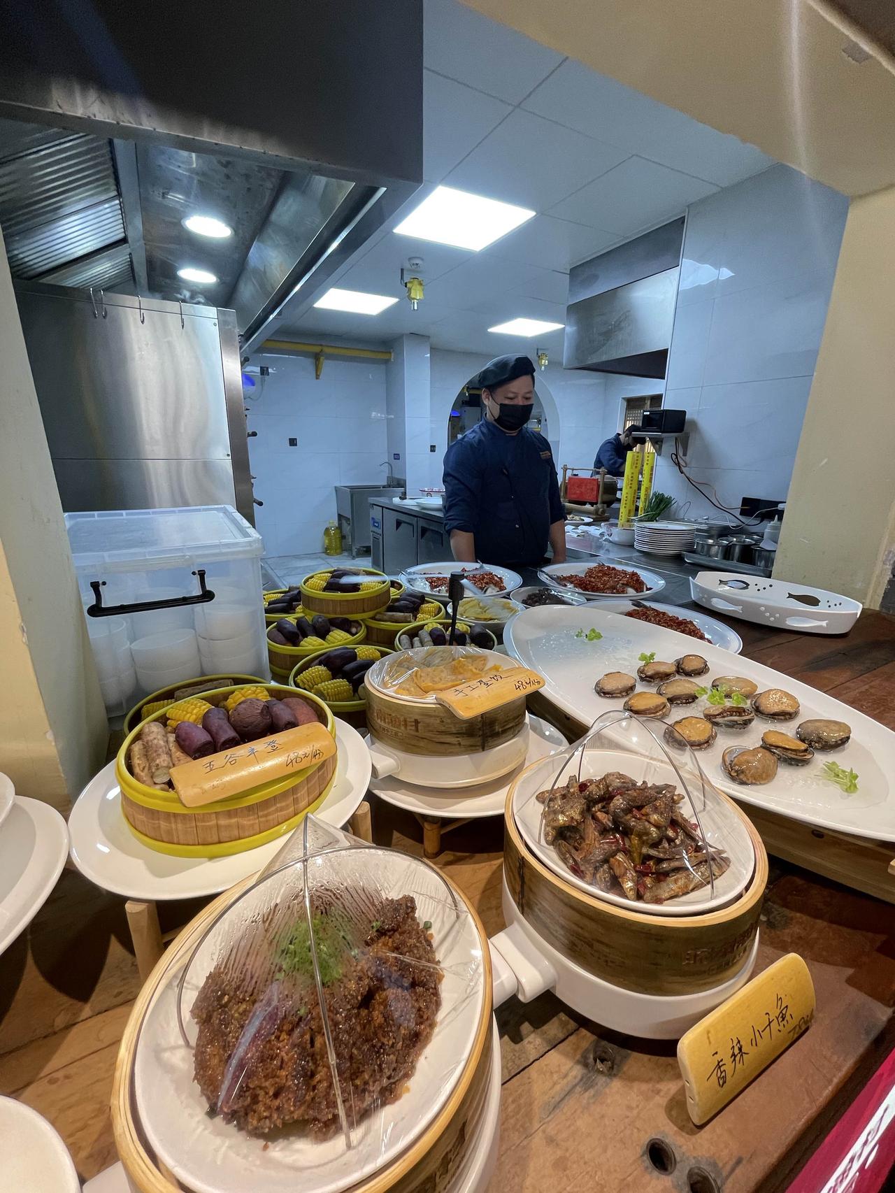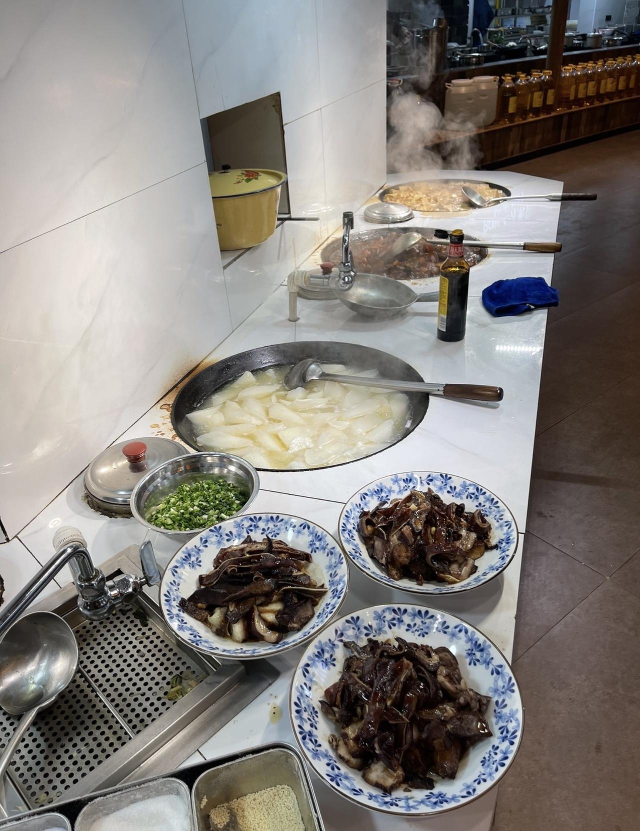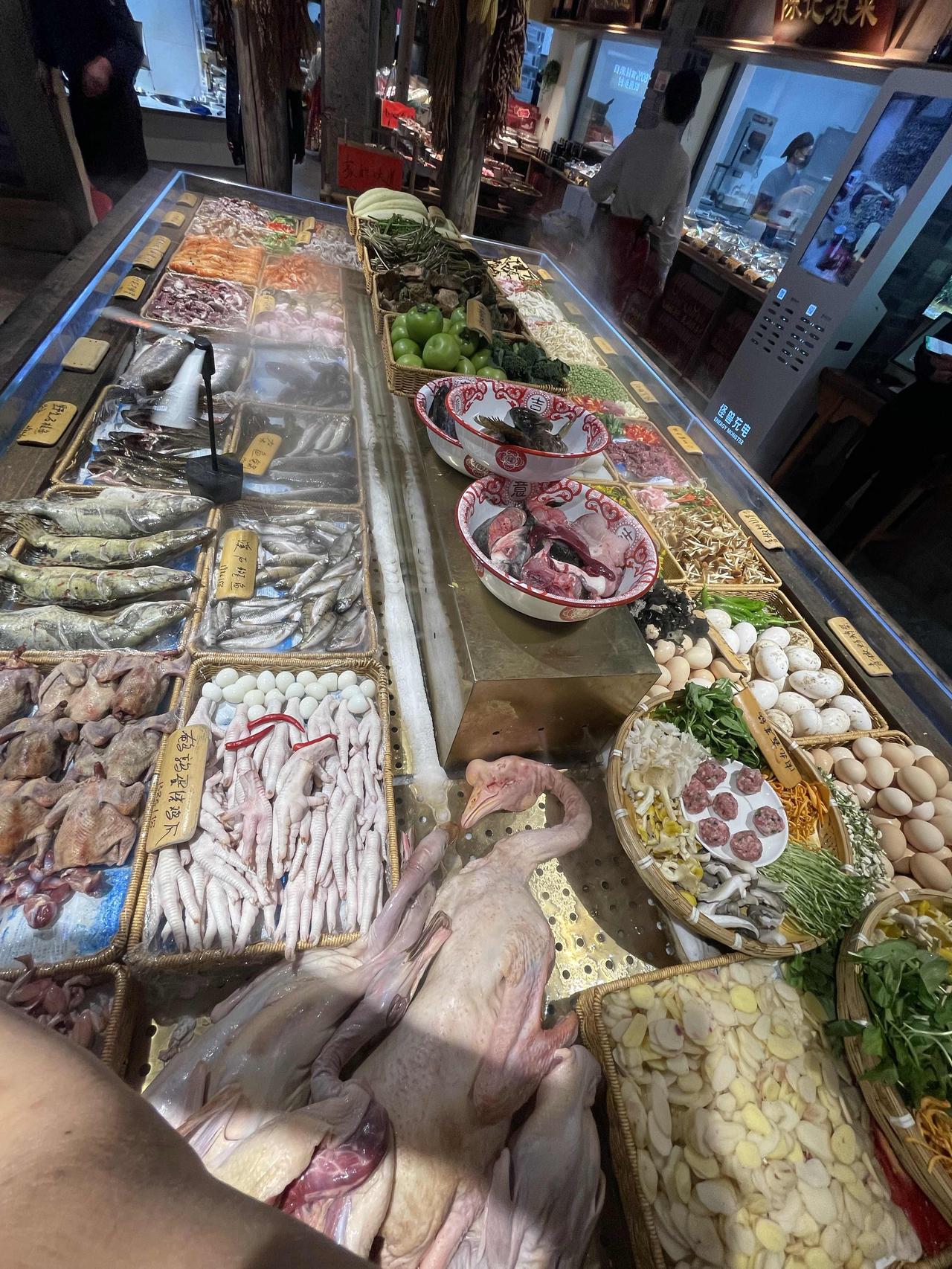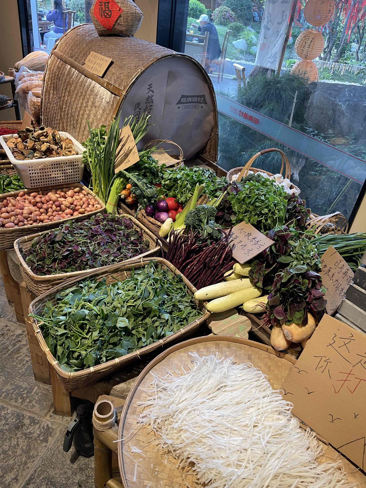 烟火气十足,都是小时候记忆。这里的公鸡和老鹅都是活的,现点现吃。他们还在这里种了蔬菜,有自己菜园。