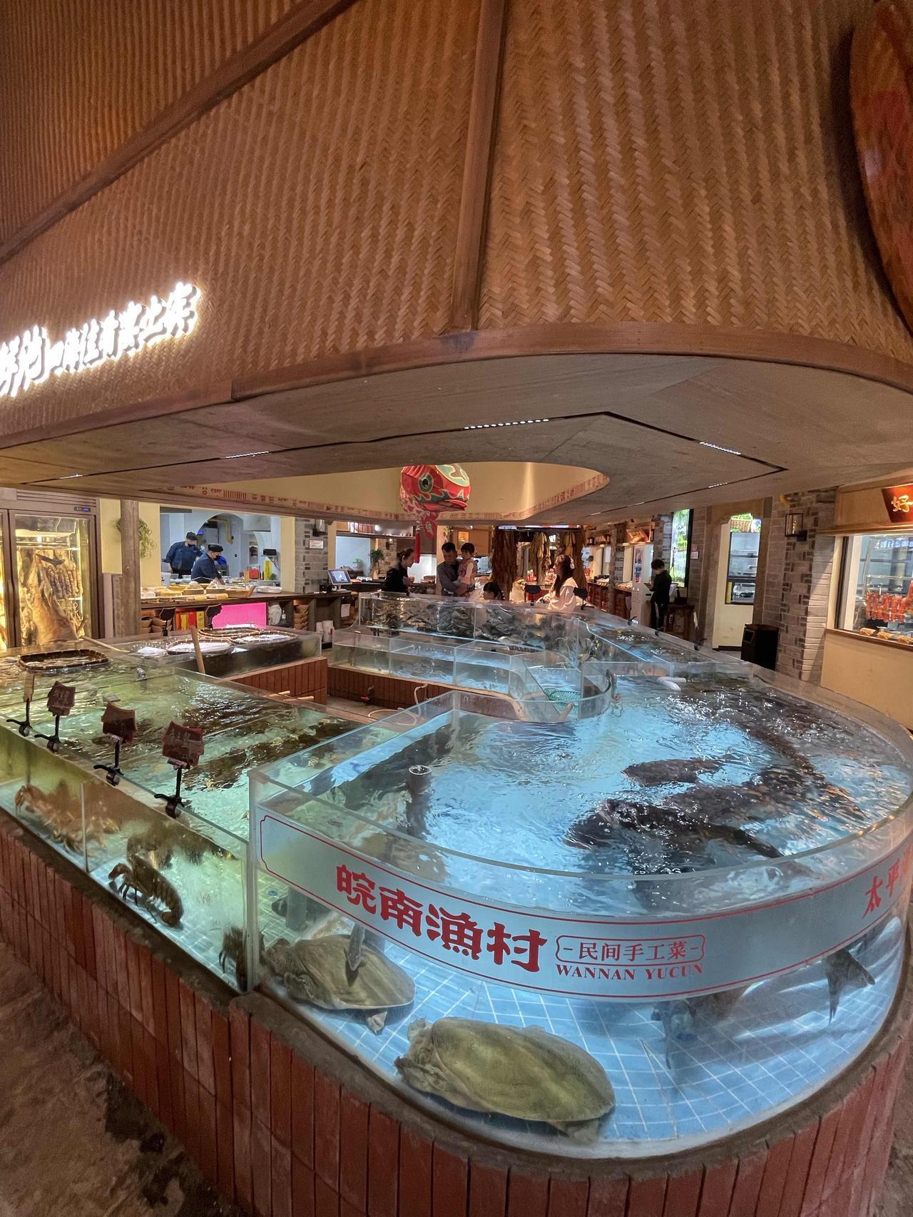 逛完美景,重头戏必须安排刘园里面的皖南渔村!这是他们投资千万打造的园林是土菜馆!