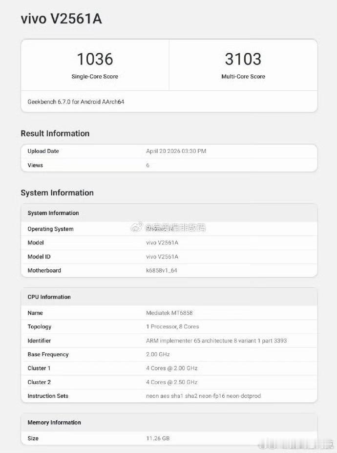 李昀锐连孟子义名字都不提天玑7300e 现身跑分平台,是天玑7100超频,由vivo y600 Pro(v2561a)搭载