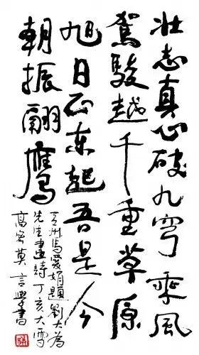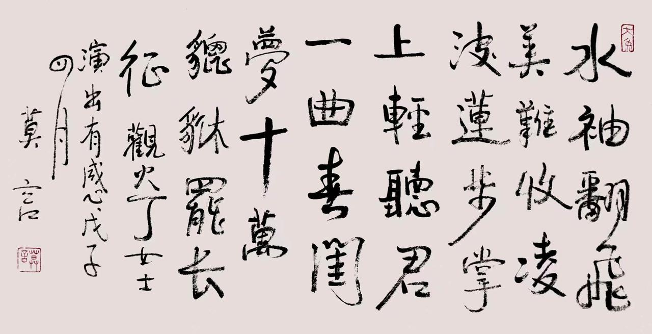欣赏莫言的书法!2001年,我去北京采访莫言,就知道莫言在练书法了,而且多是左手书写。那时他在苦练书法,而且练的时间很长了,莫言现场为我们做了书写示范。我看过他的一幅书法,落款时间是1986年3月,说明莫言在上世纪八十年代就练书法了,算起来有数十个春秋了。莫言的书法灵动、奔放、率性、洒脱,龙飞凤舞,汪洋恣肆。具有审美价值。莫言曾经给我的著作题写书名和题词,我甚爱之!莫言曾出版书法集,很大的开本,厚厚的。我在新华书店看过,并认真地翻阅了一遍,爱不释手。莫言的书法有文人气质,内涵丰富,意蕴深远,耐看,耐品!莫言与王振先生开了一个公众号“两块砖墨讯”,展示了二人的书法和诗词作品,是很有欣赏价值的。我几乎期期都看,一期不落,得到一种艺术享受和精神享受。
