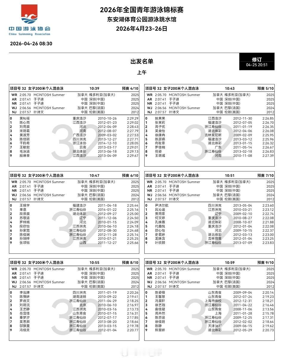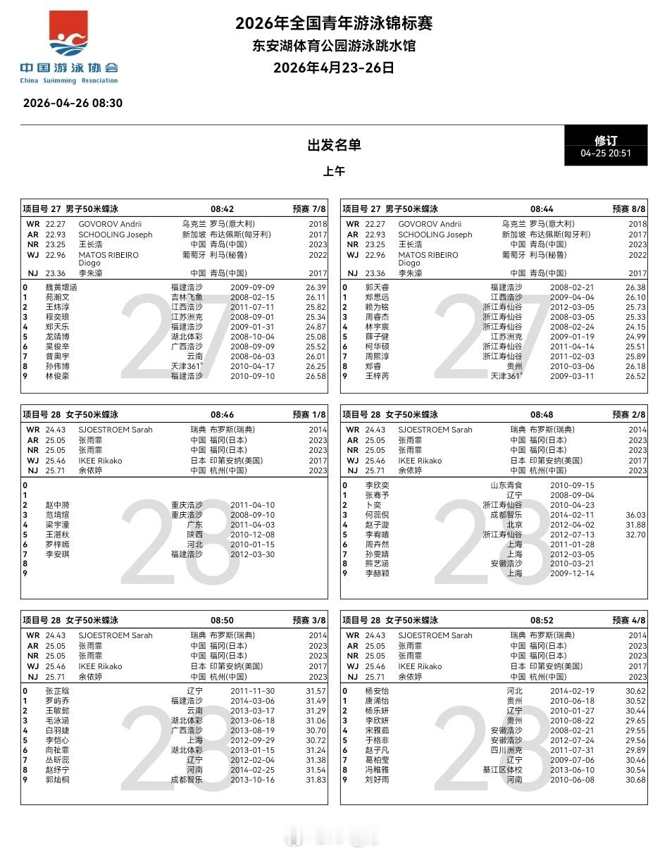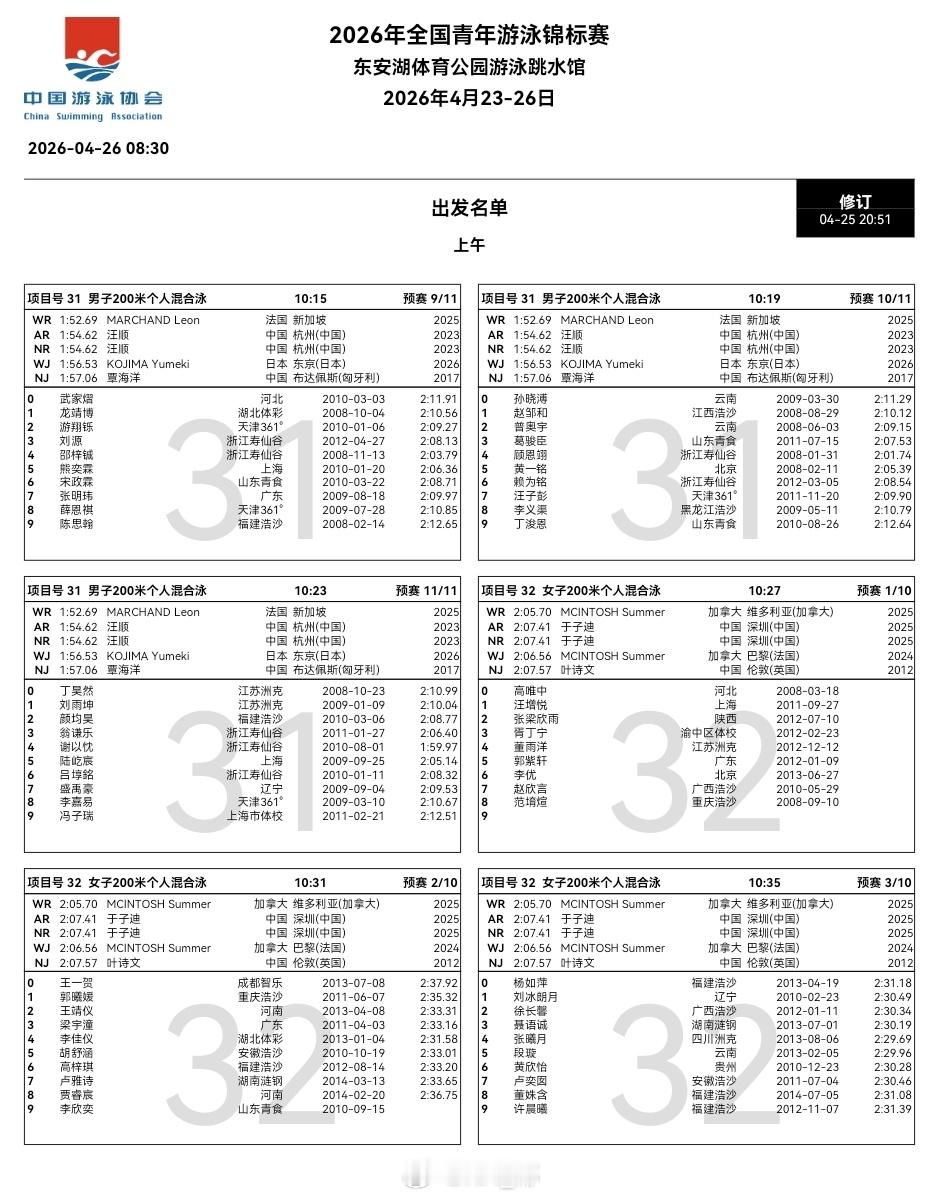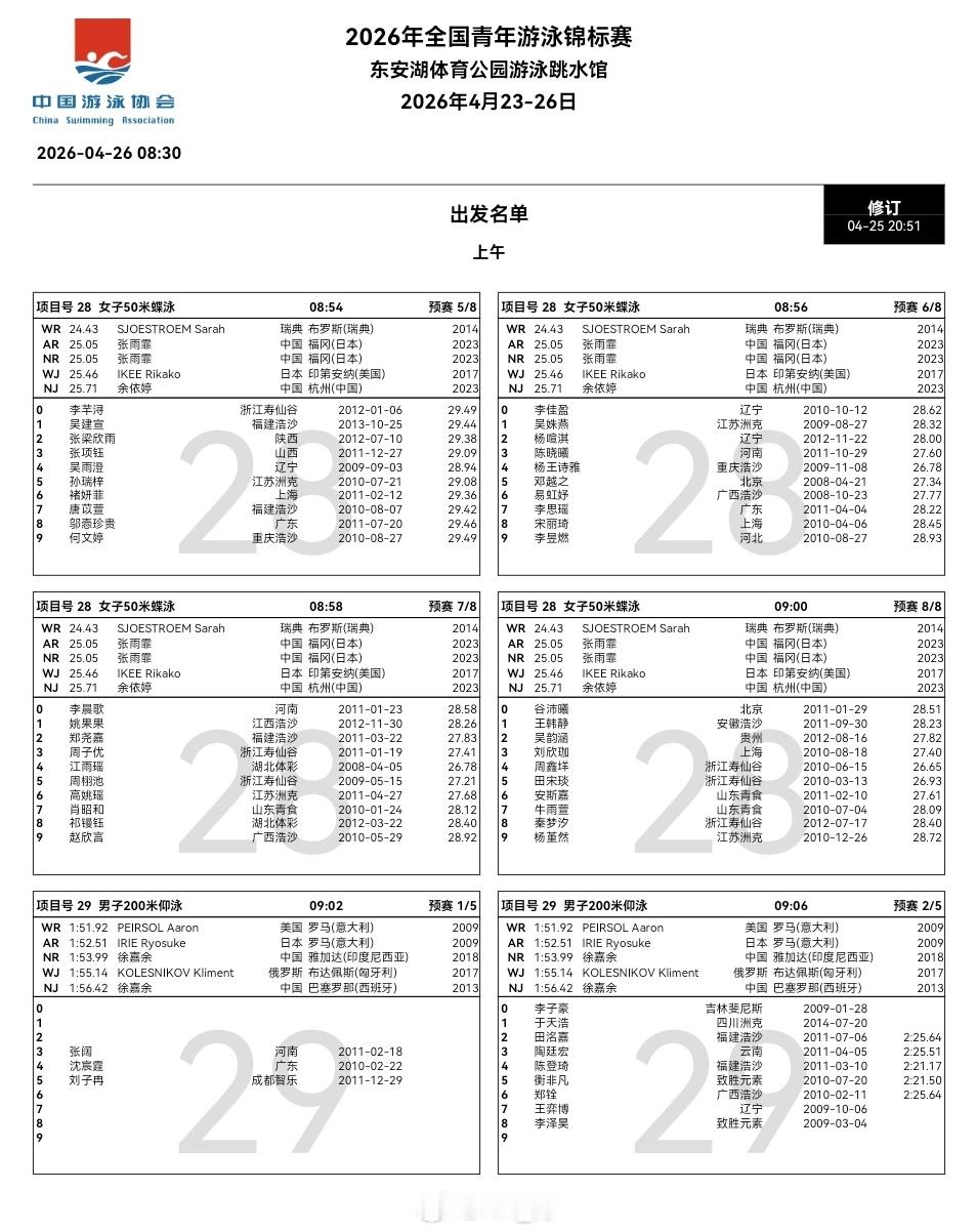 全国青年游泳锦标赛 最后一天预赛秩序单