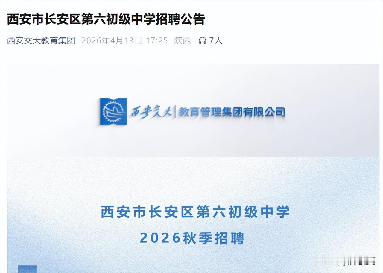 据悉,项目将引入西安交大教育集团合作办学(近日,西安交大教育管理集团发布招聘信息,明确学校暂命名为西安市长安区第六初级中学(最终以政府公布为准)),预计2026年9月可正式投用;学校紧邻已开学的西安交大教育集团长安区第十六小学,两所名校形成 “小学 + 初中”12 年一贯制教育闭环,共享交大教育资源,构建城南优质教育矩阵。