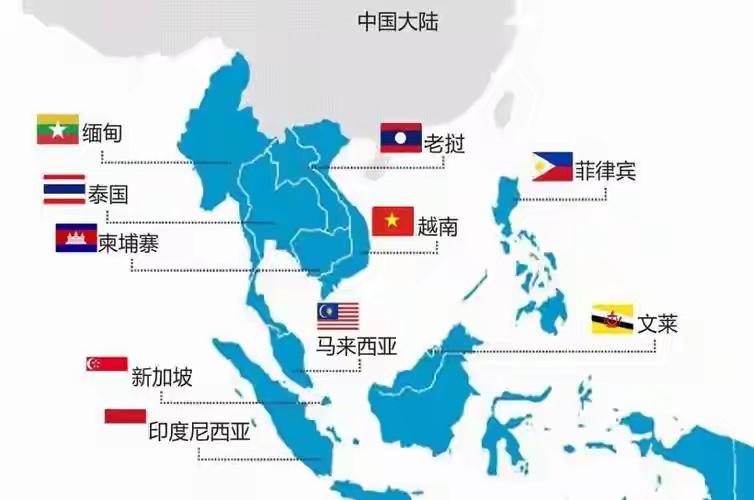 东南亚国家联盟,简称东盟。1967年8月8日在泰国曼谷成立,目前,东盟有10个成员国:文莱、柬埔寨、印度尼西亚、老挝、马来西亚、菲律宾、新加坡、泰国、缅甸、越南。整个联盟成员国,总面积约450万平方公里,总人口6.7亿,经济规模在亚洲仅次于咱家和日本。东盟这十个国家,跟咱家的关系亲疏远近不同,大概可分为五个档次: