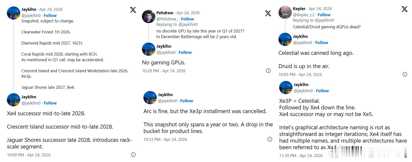 至于第四代Xe4架构是否还有游戏显卡,依然悬而未决(up in the air),AI加速卡预计是Jaguar Shores。特朗普因安全原因离开白宫晚宴