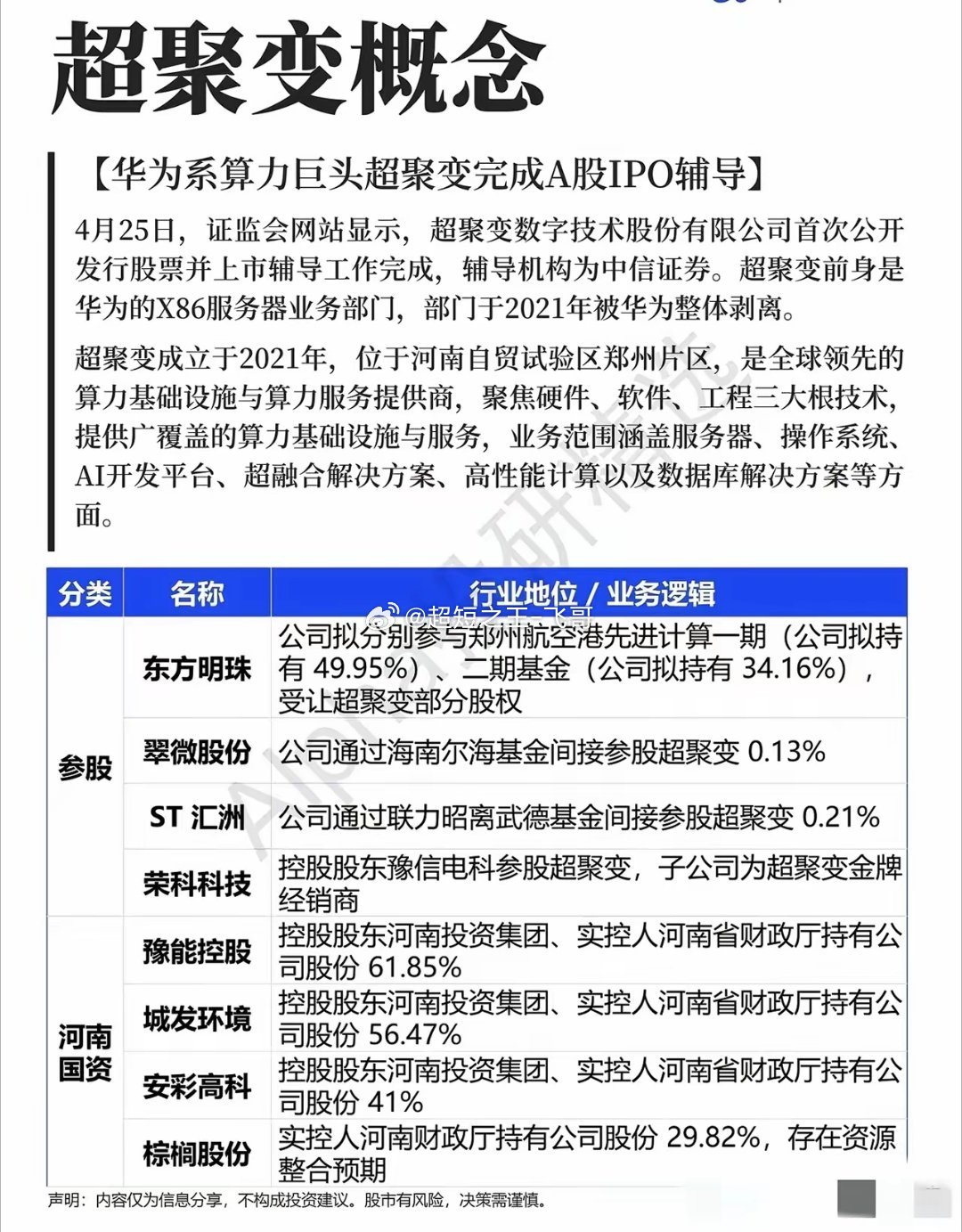 华为系算力巨头超聚变完成IPO辅导,产业链关注度持续升温。从股权关系看,东方明珠