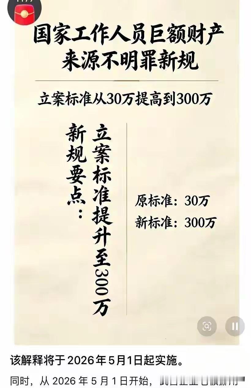 5月1日起施行。两个变化,反差到让人咋舌:国家工作人员巨额财产来源不明,立案门槛从30万提至300万,直接翻了十倍。而民营企业人员挪用资金,进行非法活动的,从6万降到了3万,直接腰斩。