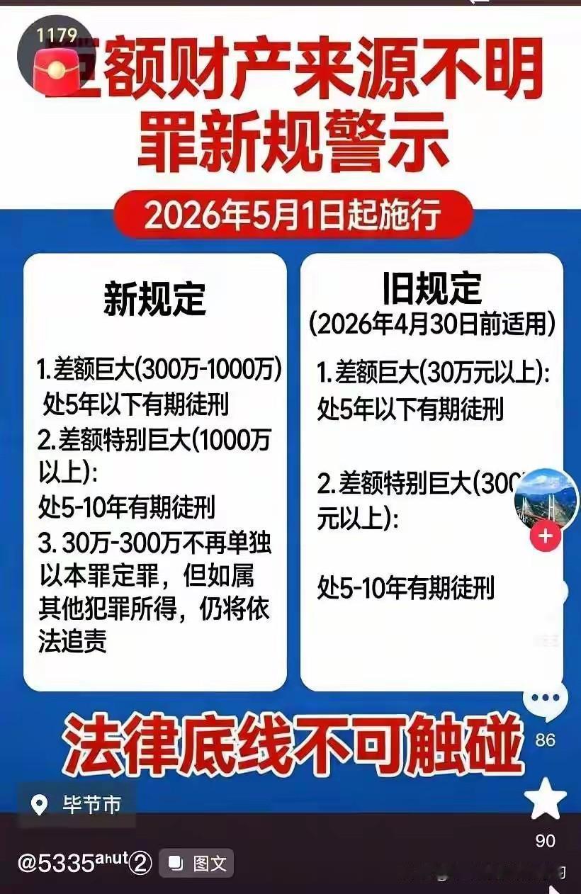先说那个“涨十倍”。巨额财产来源不明罪,本就是“兜底条款”,是查不清具体怎么贪的才用。1999年的30万放到现在,很可能将财产申报失误误伤为犯罪。提到300万,是把弹药留给真正的巨蠹。别以为不到300万就没事了——差额全没收,党纪政纪处分一样能让人身败名裂。这叫“纪法衔接”,是更科学的严。