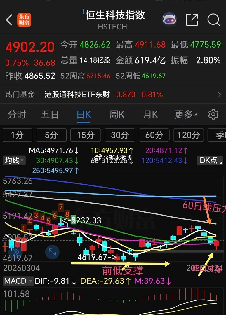 港股通创新药 恒生科技下周走势分析。恒生科技指数前面反弹力度比较弱,连60日线压