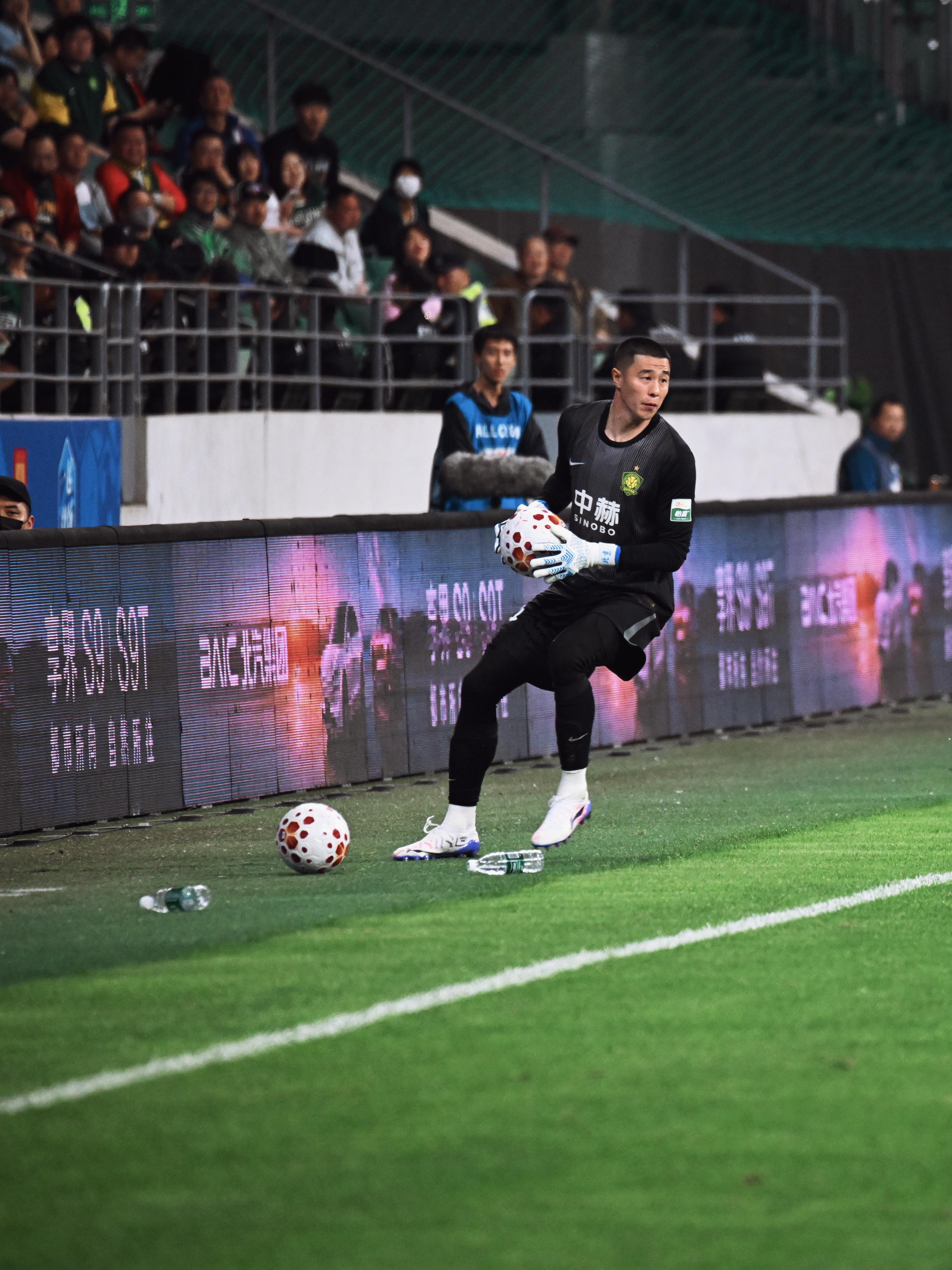 比分落后,门将侯森冲刺至中场发界外球。北京国安2比4天津津门虎