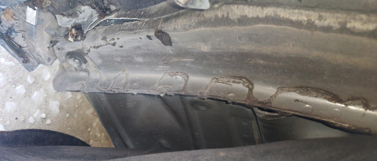 结果还真验出来了问题,车头左侧发生过撞击事故,左前翼子板更换,翼子板内骨架变形,轮旋变形开裂,A柱变形,左前车门钣金;